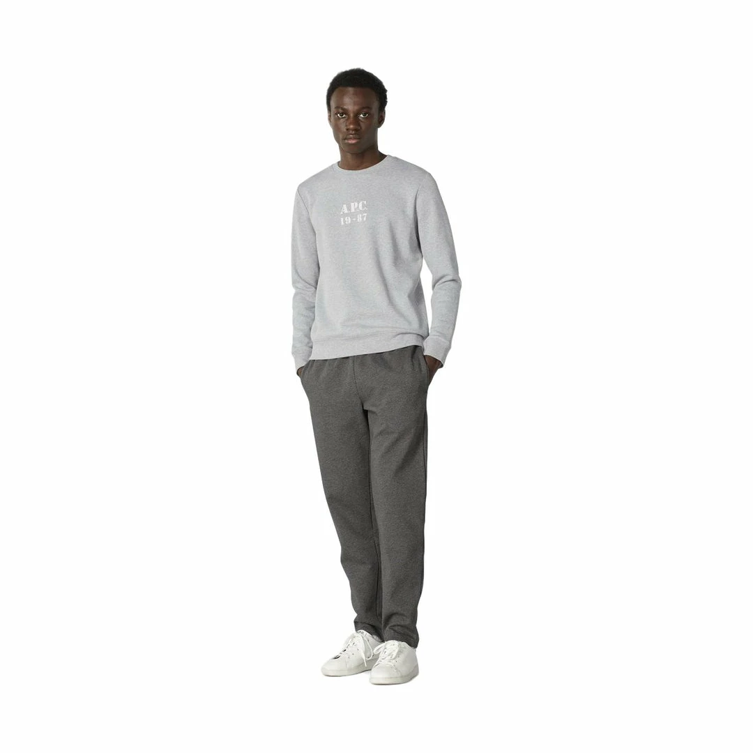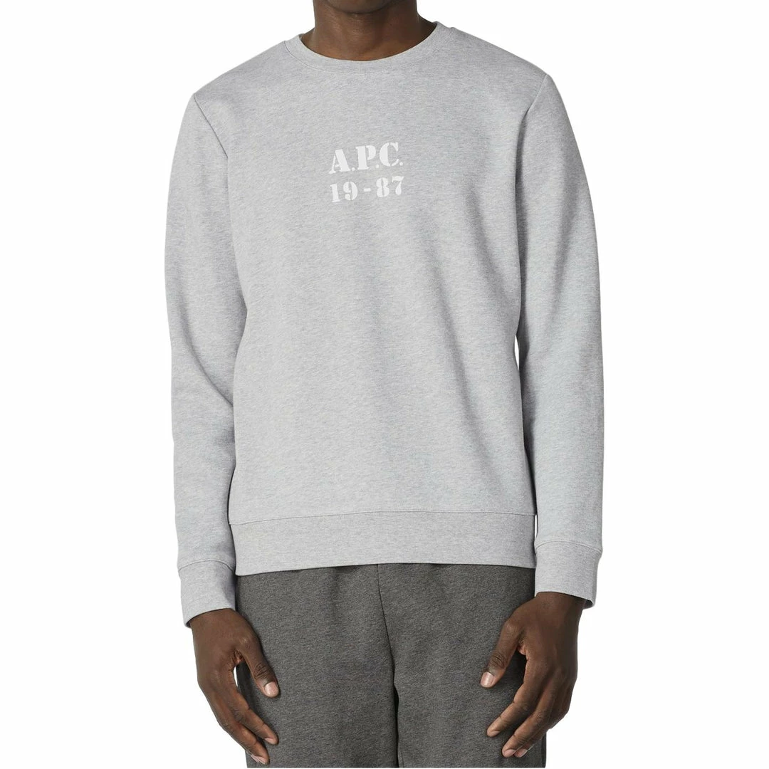 The Gabby Sweatshirt is produced with combed fleece and is 100% Cotton. Crew neckline in bias trim. It features a printed A.P.C. logo with a worn appearance on front. Long set-in sleeves with a straight hem, and wide elasticated sewn-on trim at the hem. The model is 6′ 2″ tall and is wearing size M.