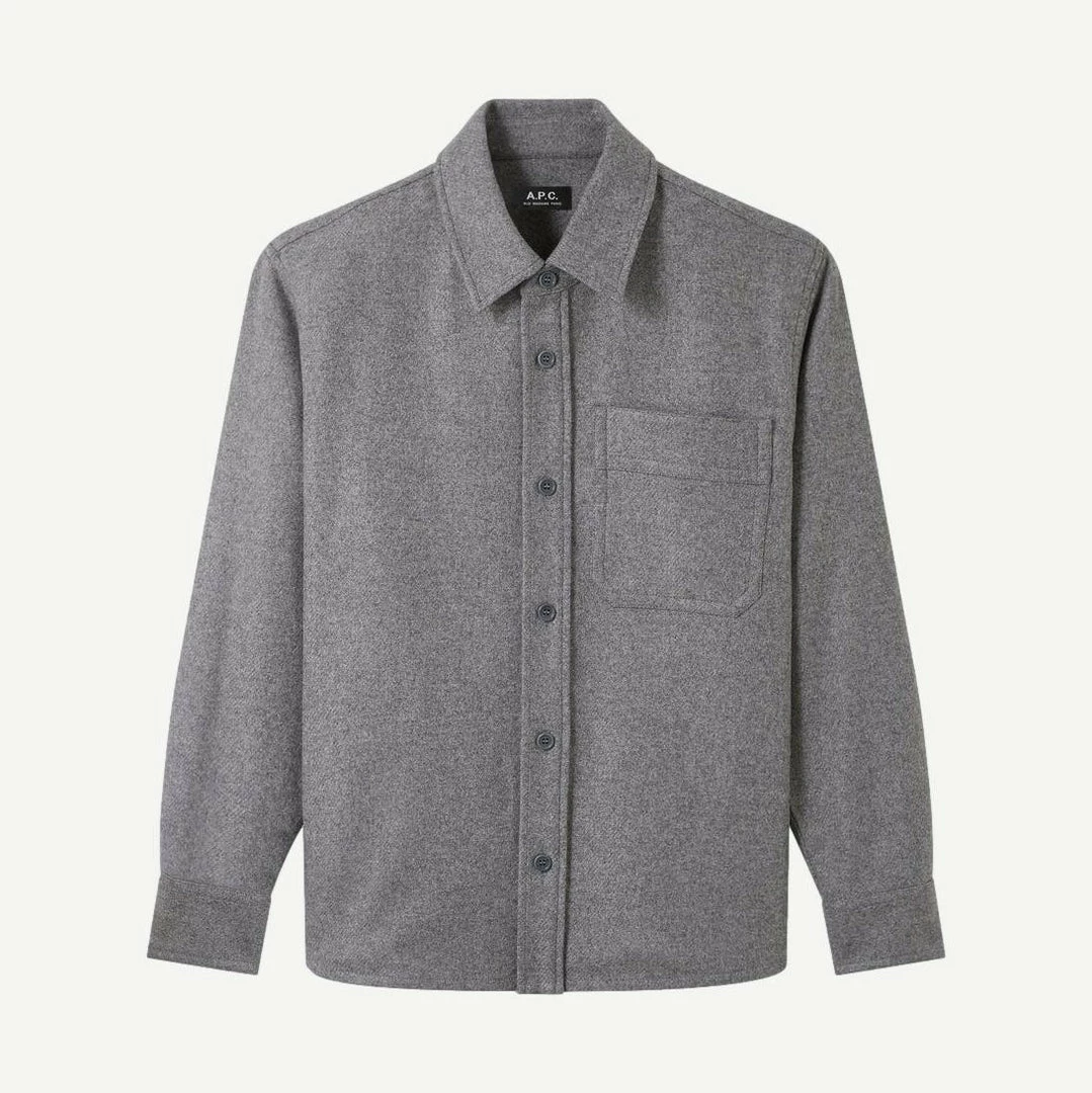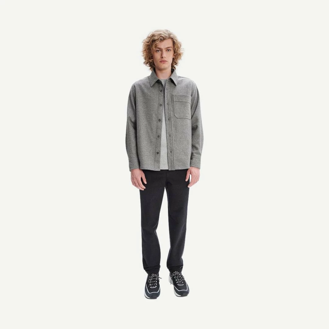 Solid-color recycled wool blend. Italian material. Wide cut. Sloping shoulder. Breast pocket. Back yoke. Shirt loop. Slit at wrist. Button closure. Tone-on-tone buttons.