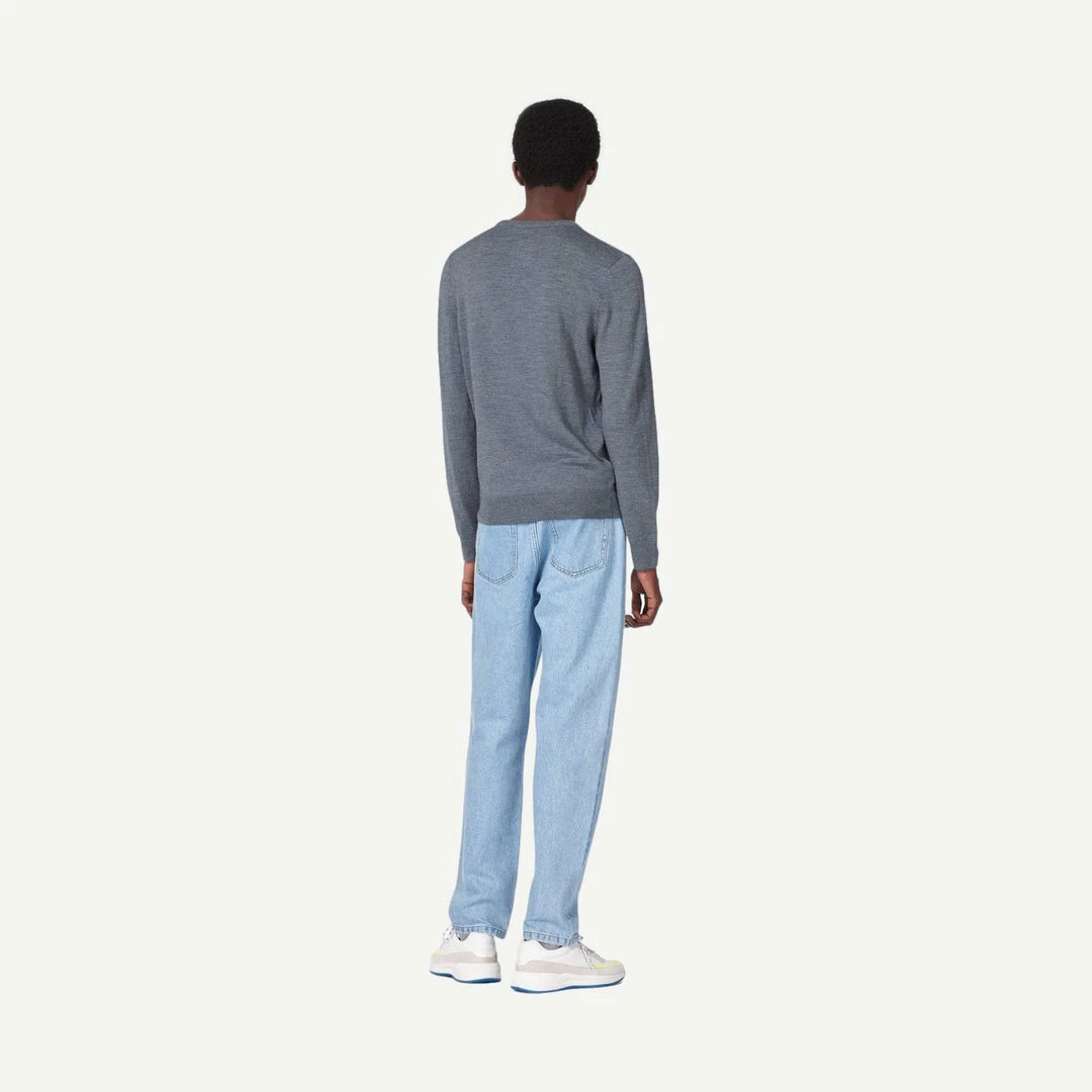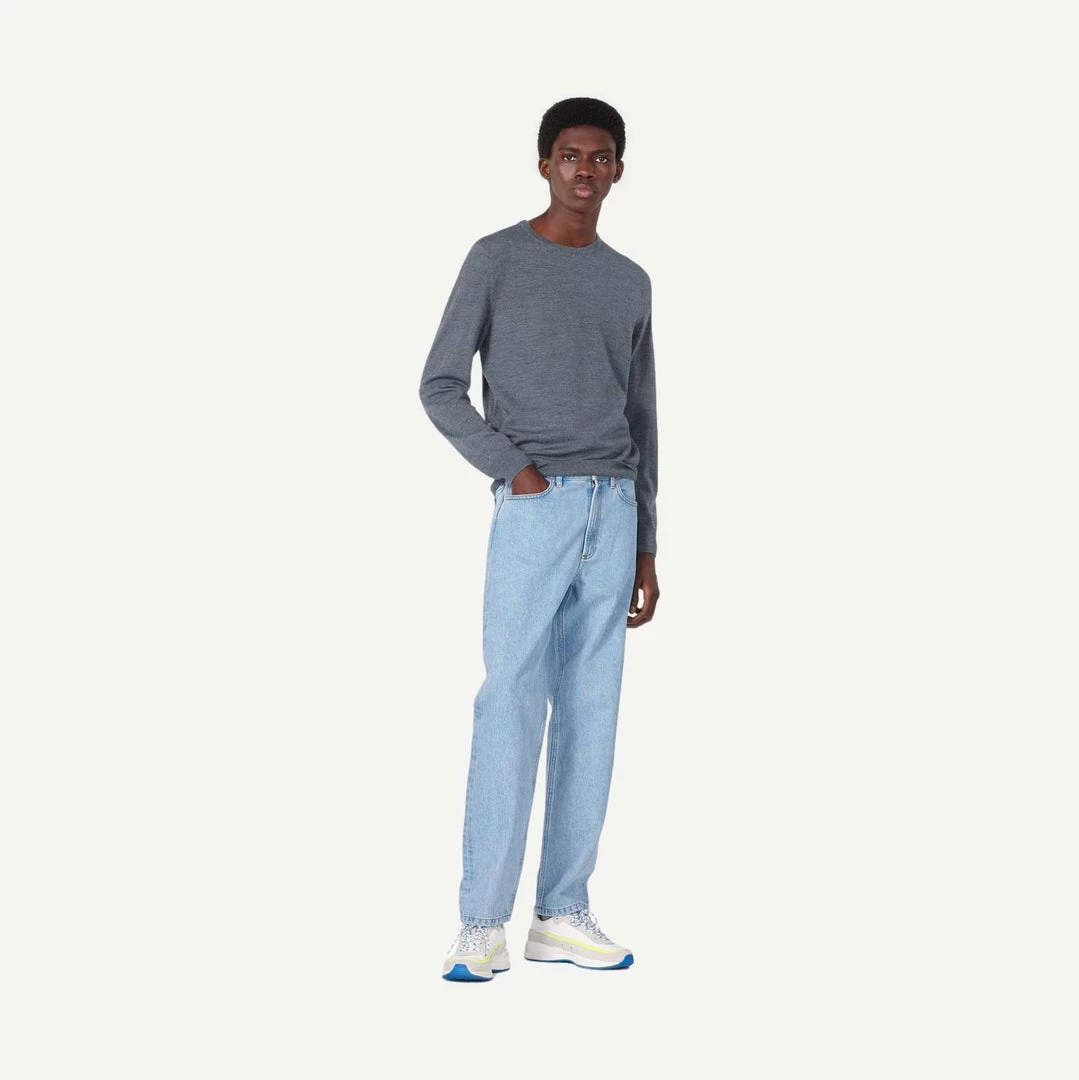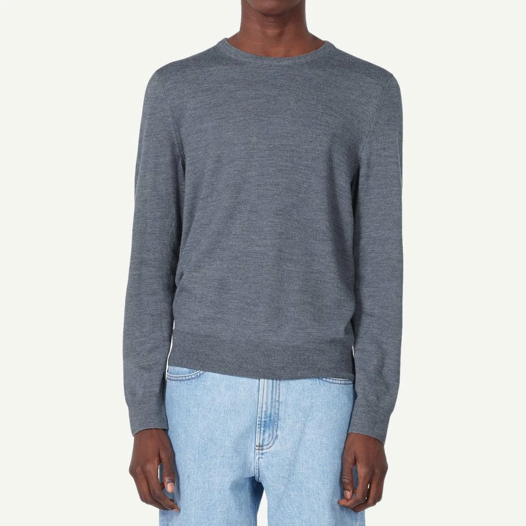 Classic Merino wool. Thin, biodegradable yarn. Stocking stitch. The material is thin and soft. Straight silhouette. Ribbed crew neckline. Set-in sleeves. The King sweater has elasticated ribbing at wrist and hem.