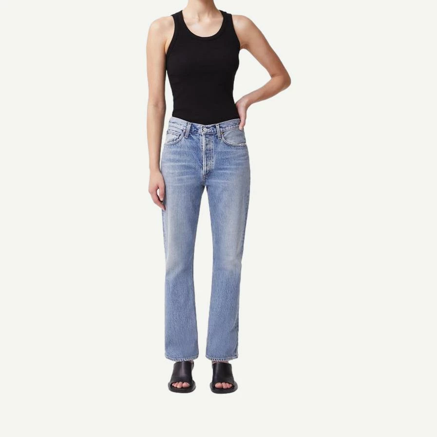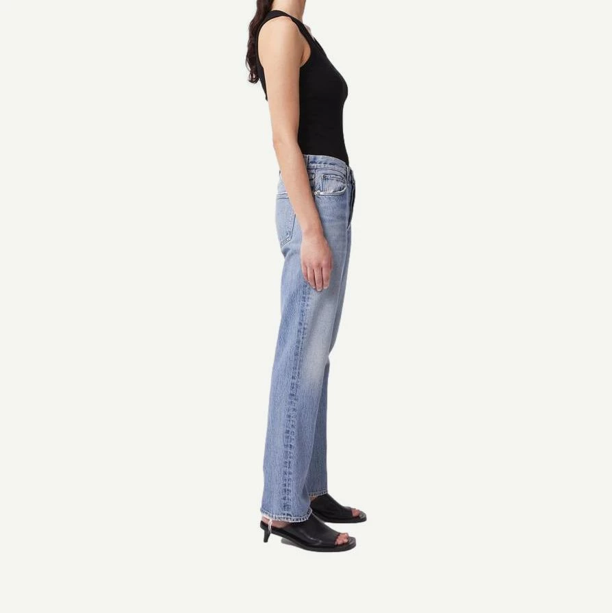 A mid rise with ease through the leg and a subtle 90’s inspired boot, cut to the ankle. With a lived-in look, these pair well with everything from T-shirts to chunky sweaters.