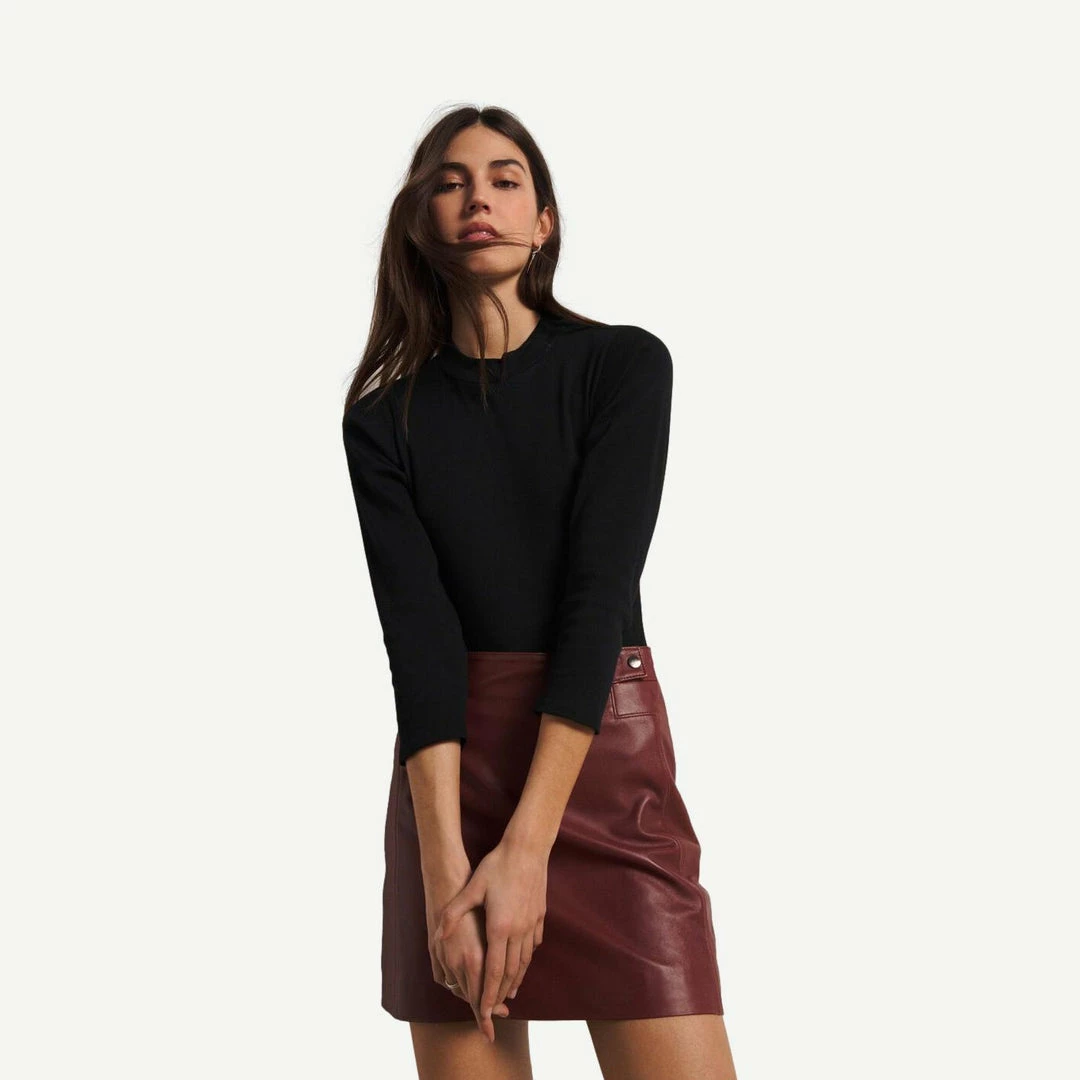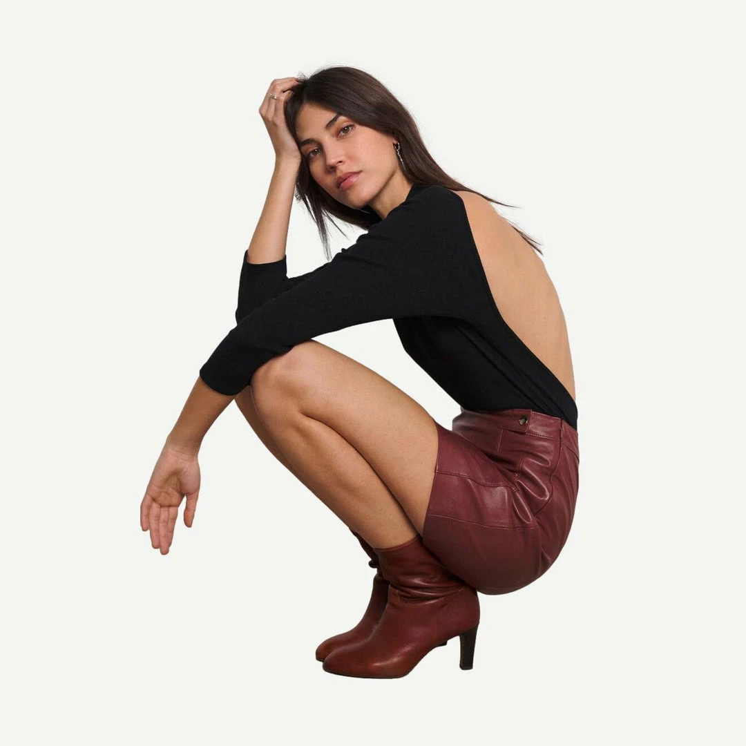 This ba&sh MONIA bodysuit delivers seductive style. The bodysuit has 3/4-length sleeves and a round neckline with two snap buttons on the nape. It’s made in a stretch organic cotton with narrow ribs for sporty-chic. It’s sexy and backless to show off skin with to magnificent and surprising effect. This is one very glamorous bodysuit.