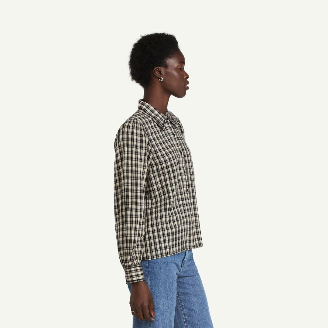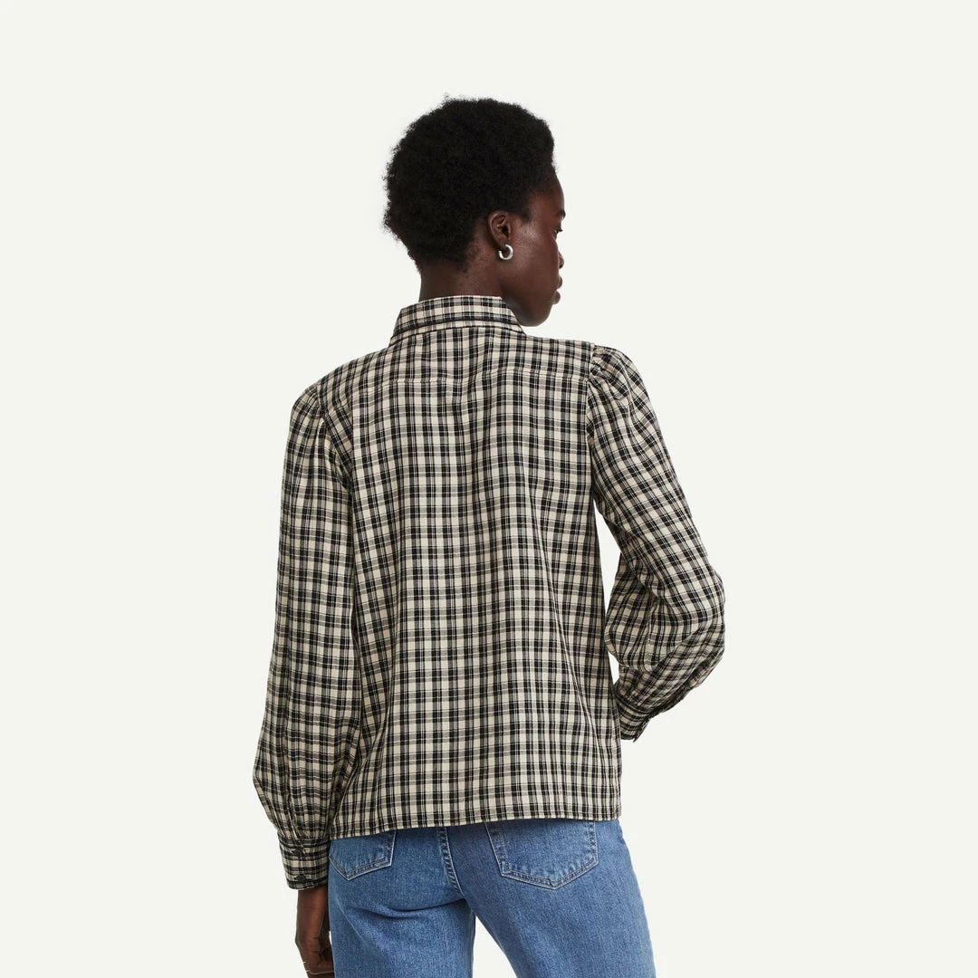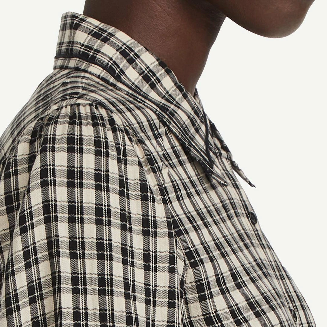 A low-key, layer-friendly staple for fall weekends, this lightweight Ba&sh shirt is detailed with classic plaid patterning and detailed with subtle pleats at the shoulders.