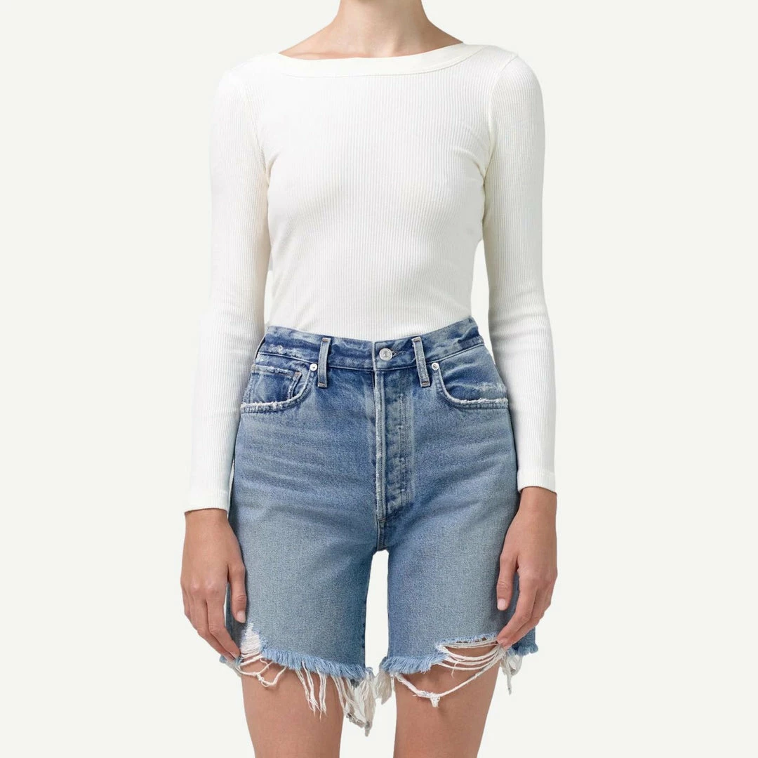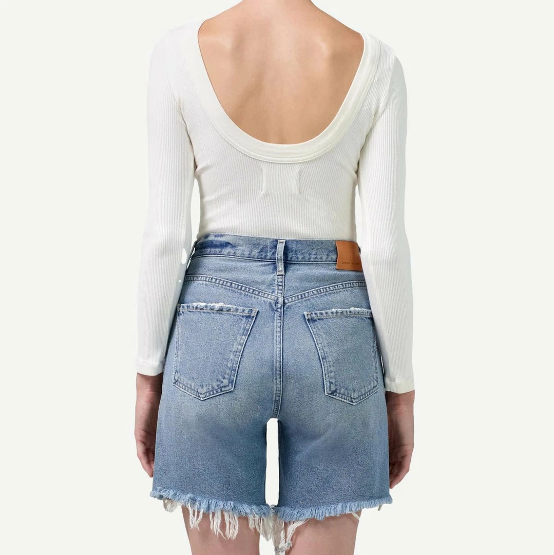 Cut from a signature rib, the Follie offers an elegant high neck met with a dramatic deep scoop on the back.