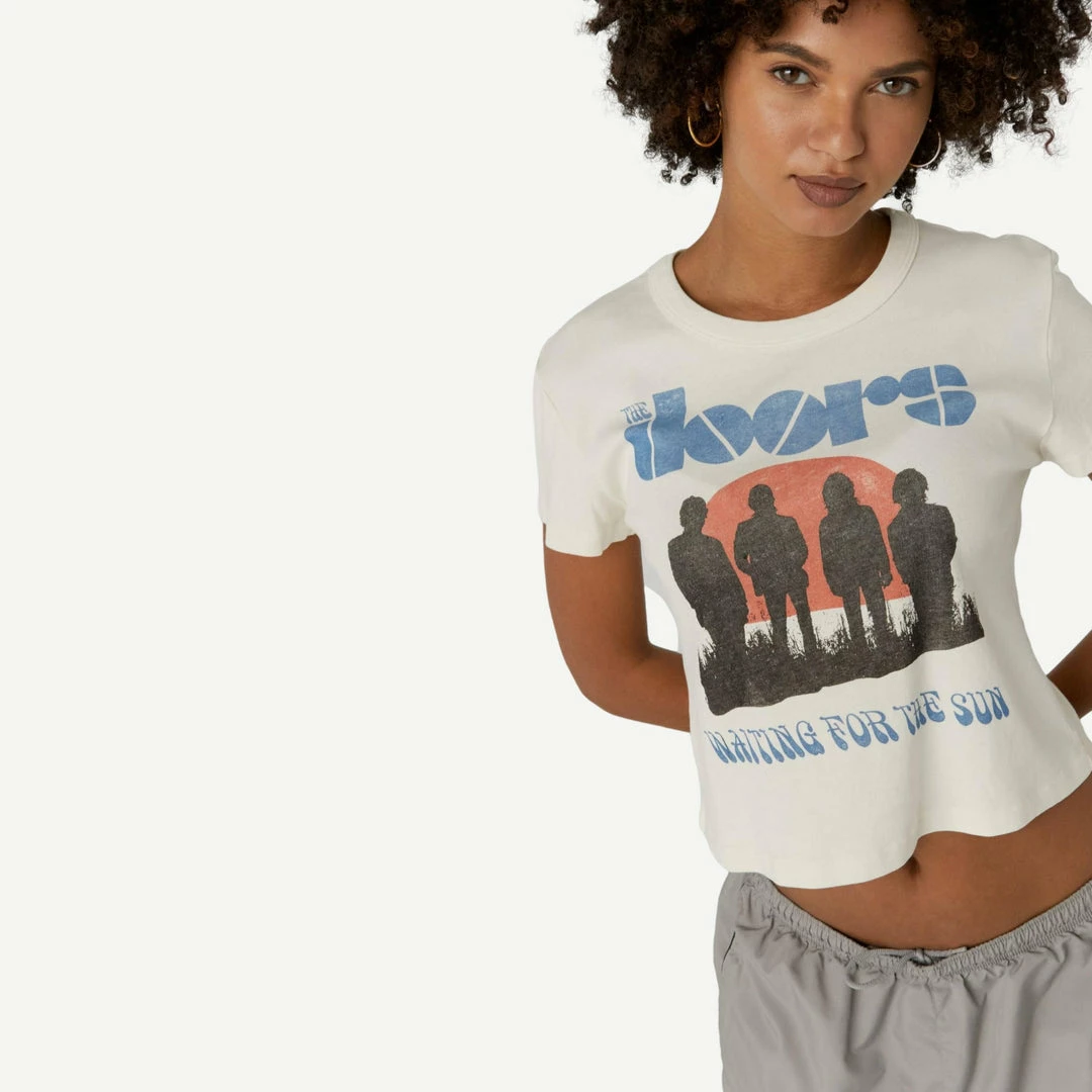 Back in action, baby. Your favorite Doors ‘Waiting For The Sun’ graphic is back, but with an entirely new fit. Featuring a shrunken body and smaller sleeves, it’s a match for all the things you’re currently into. Since it’s pretty neutral, you can still wear it on repeat with anything from sweats to denim. An iconic, perfectly fitted t-shirt that will make everyone incredibly jealous.