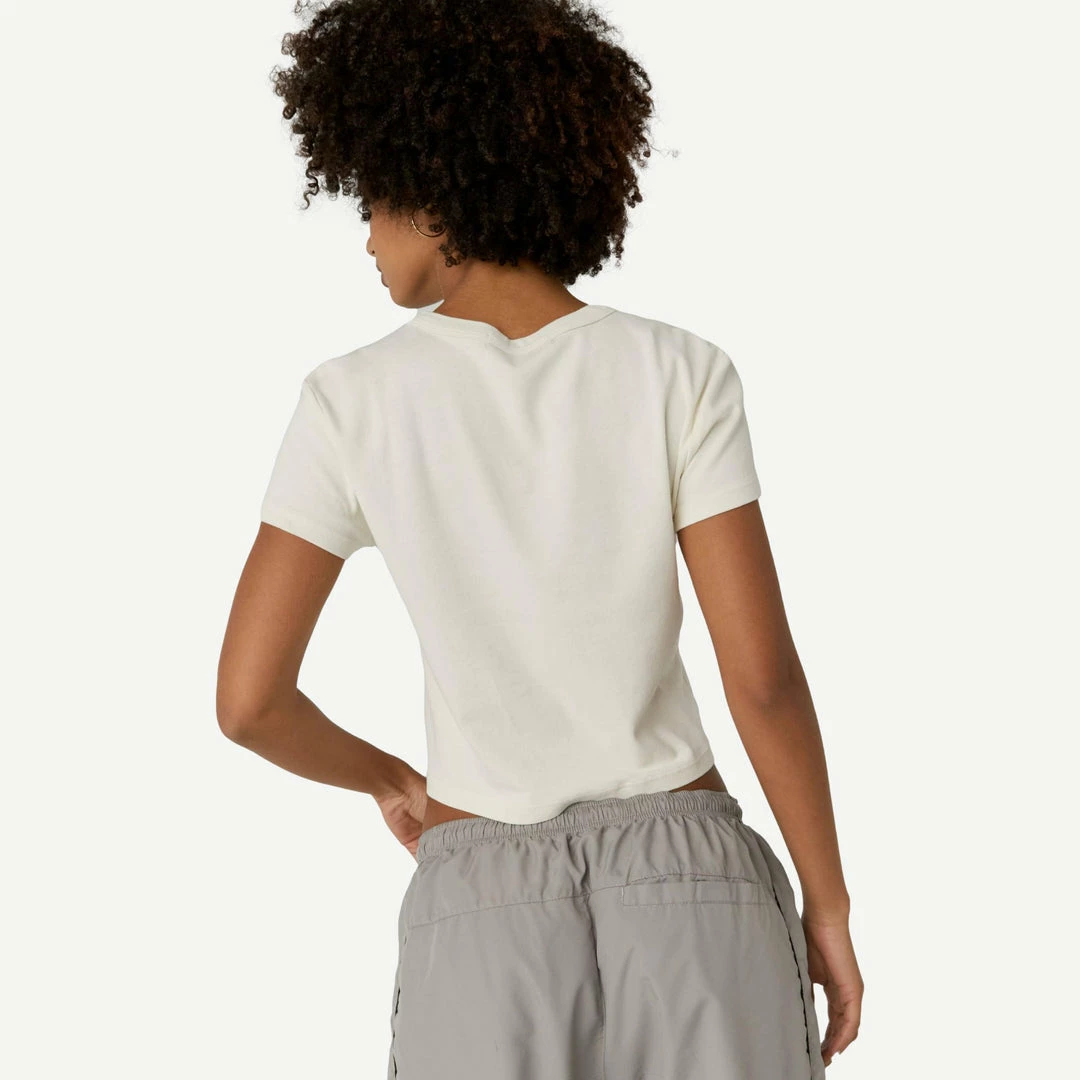 - Loosely fitted crop tee with the perfect proportion and hitting between the waist and hip