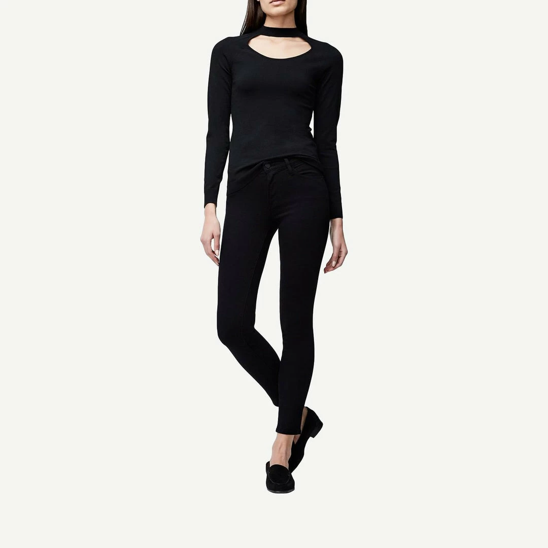 Classic 70s Inspired High-Rise with a Contemporary Skinny Silhouette. Crafted from Premium Dark Denim with Super Stretch and Strong Recovery.