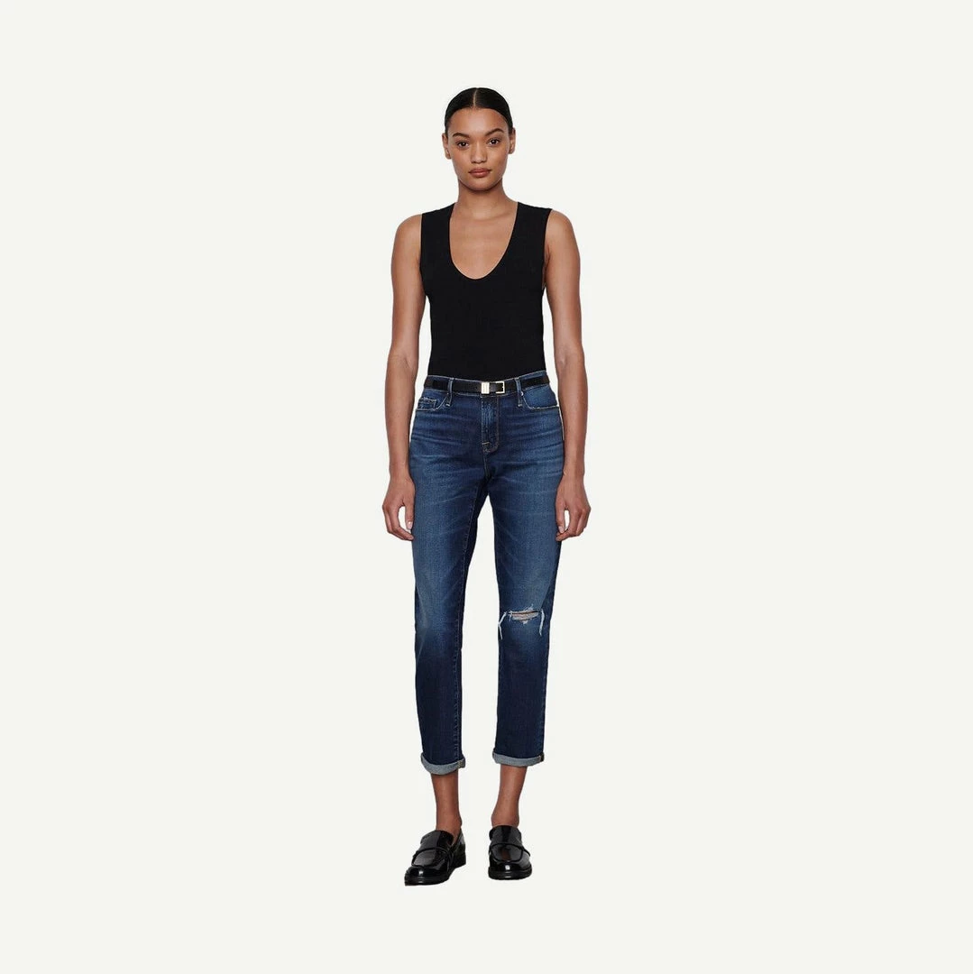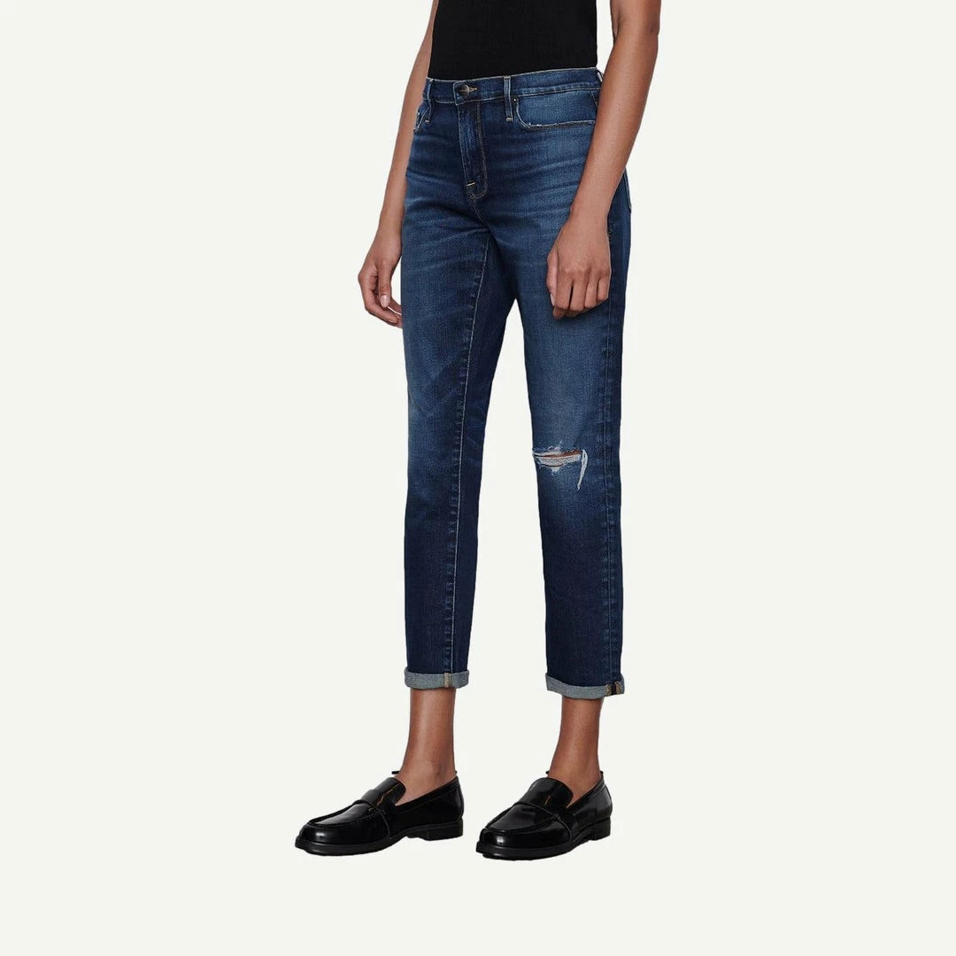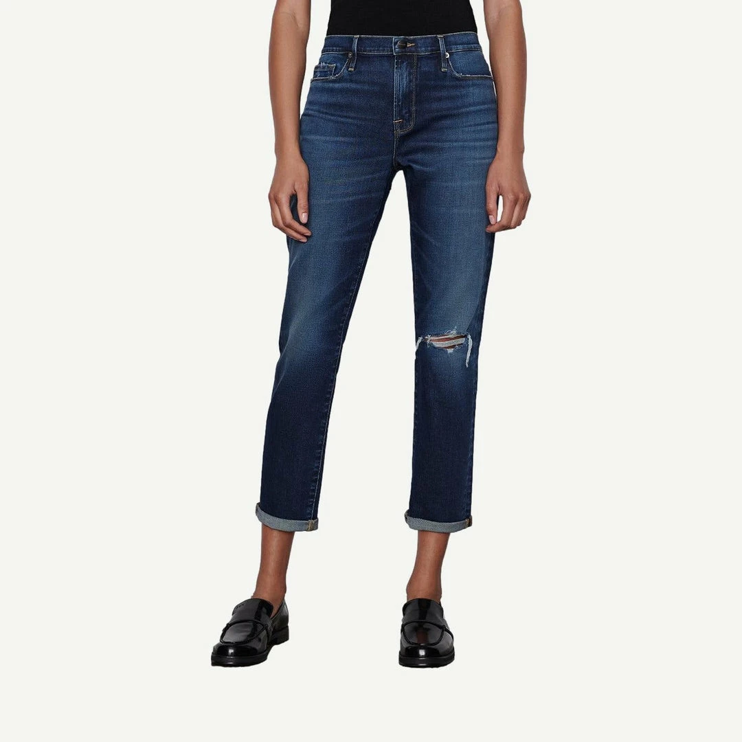 rame Denim updated this mid-rise boyfriend jean for fall 2021 with tattered detailing for an undone feel. It’s cut from premium cotton with a hint of stretch for a slightly oversized and comfortable fit. We recommend sizing down if you prefer a more fitted look.