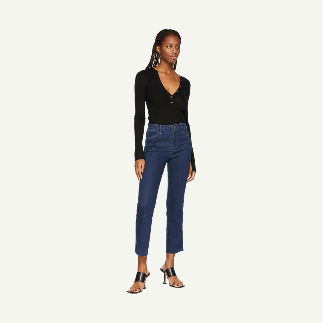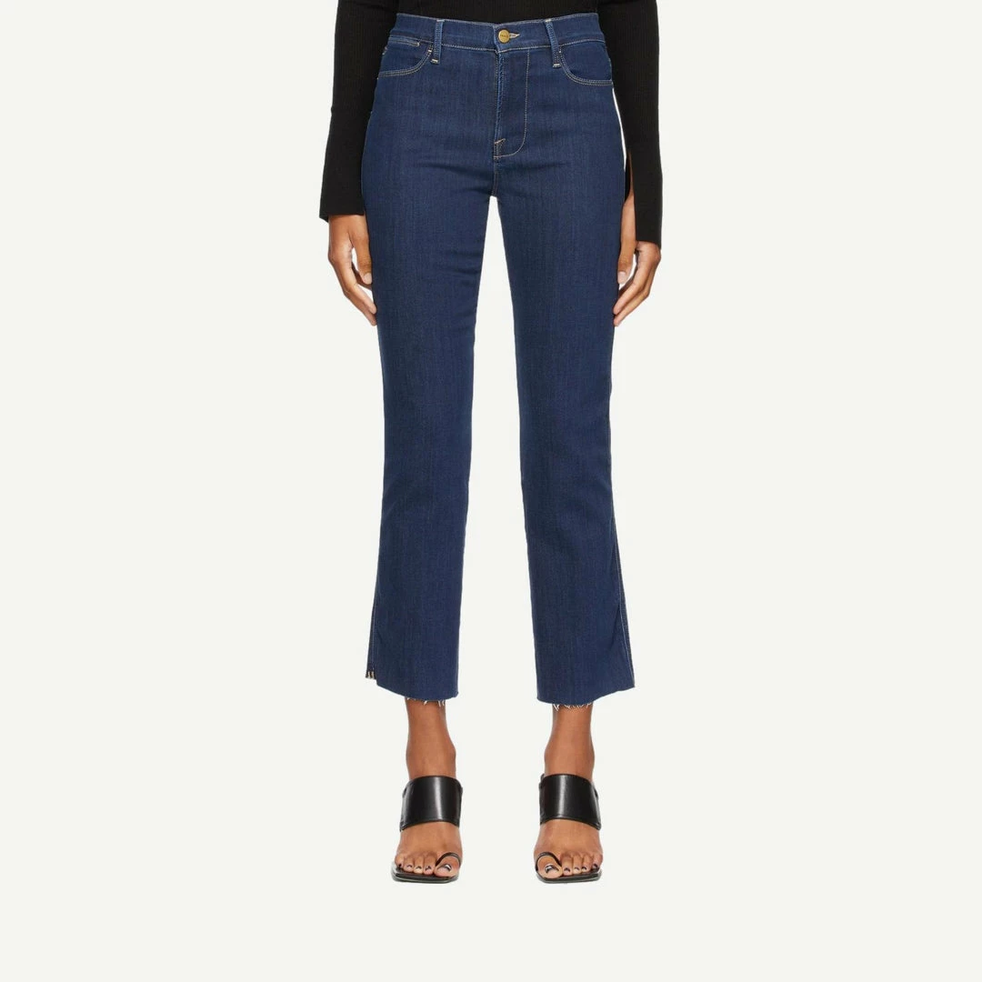 This best-selling high-rise, straight-leg jean—designed to be subtly fitted at the waist and thighs with a nip-in at the knees—features raw edges that fray after washing for an undone feel. Pair yours with this season’s ribbed knit tops or a silk blouse for elevated style.