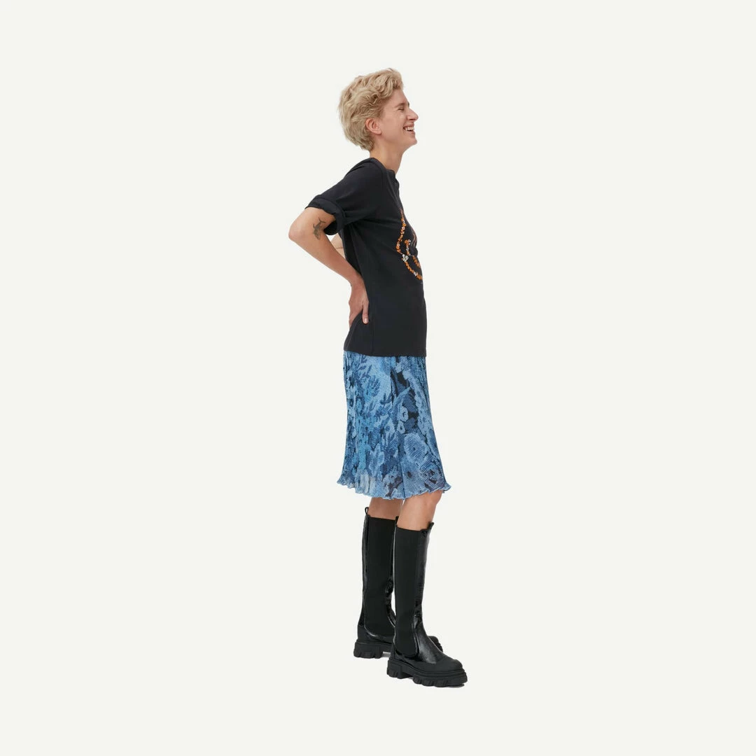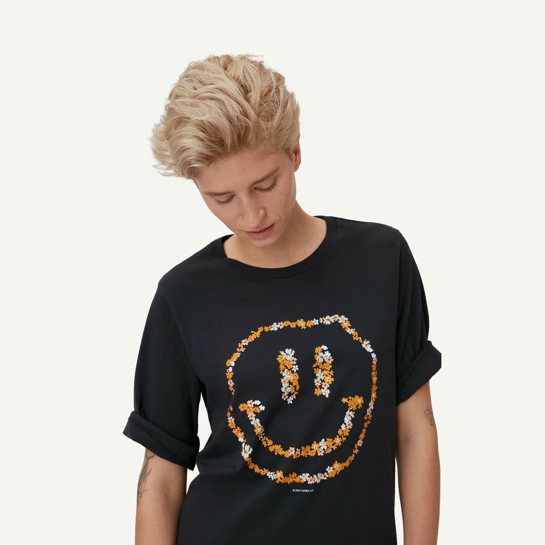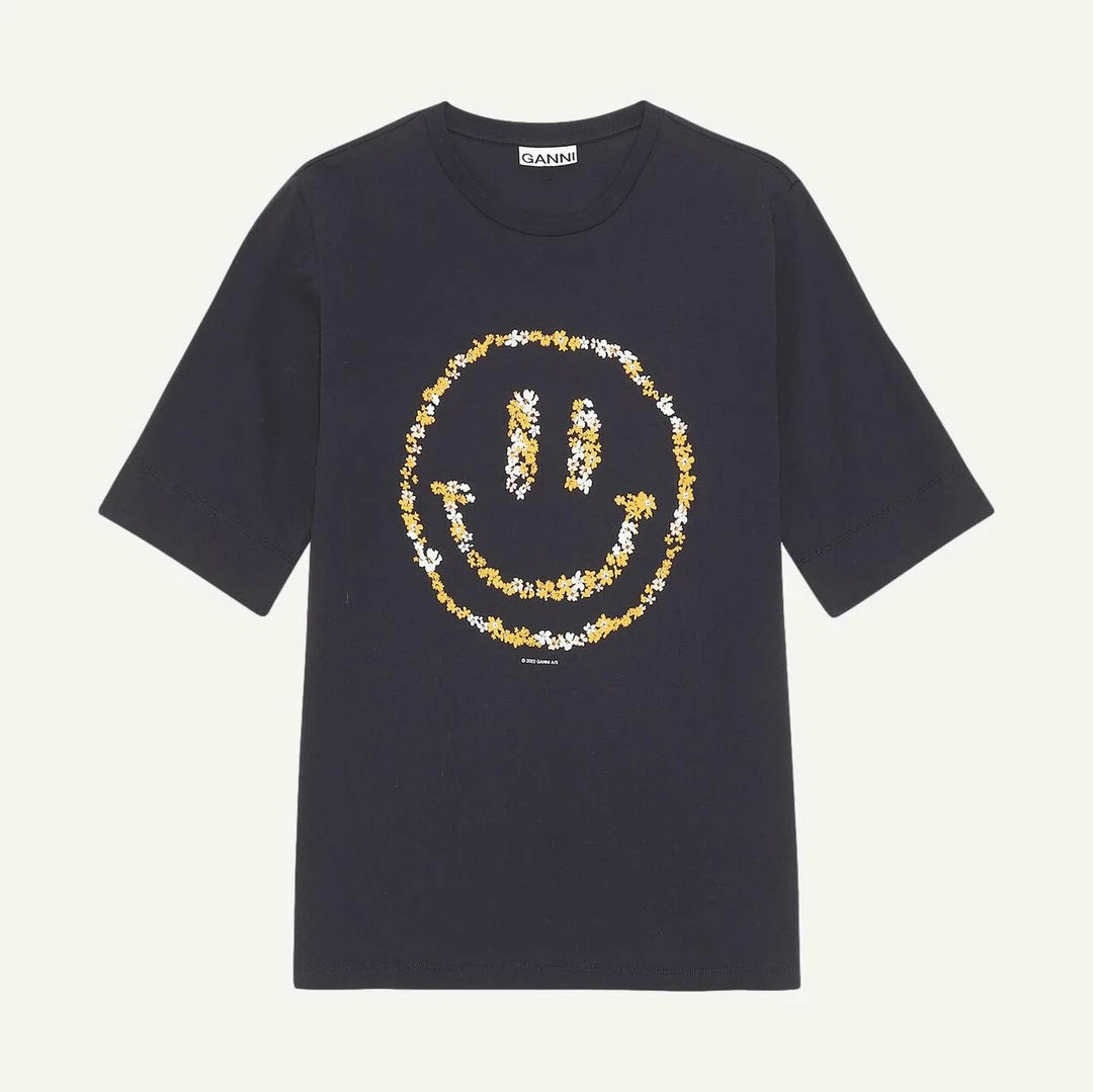 Keep it casual with this graphic tee in jersey, featuring Ganniโs signature smiley face, illustrated with mini flowers.