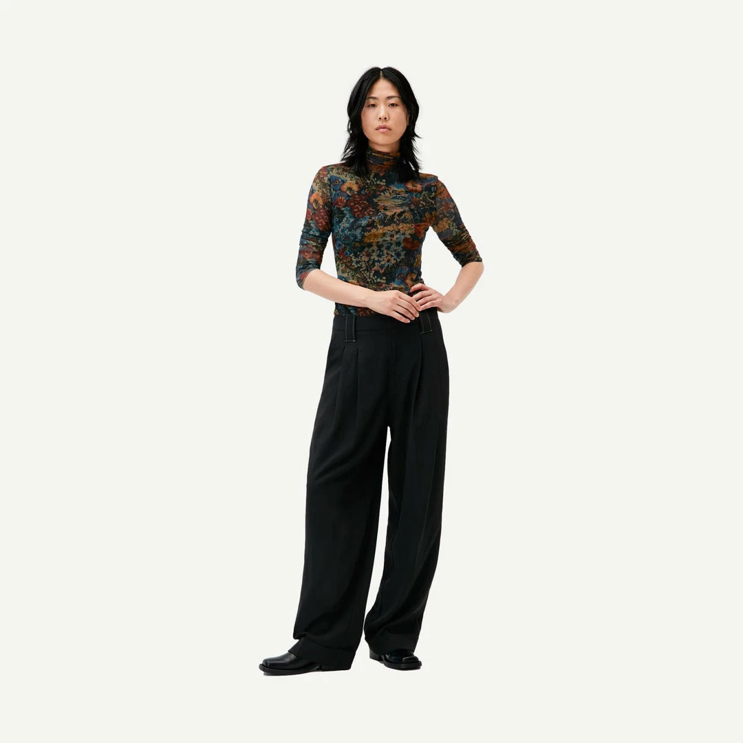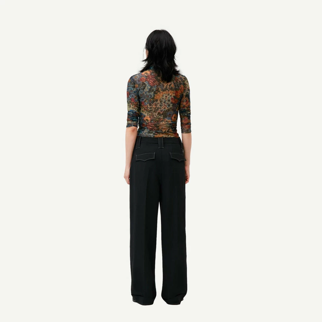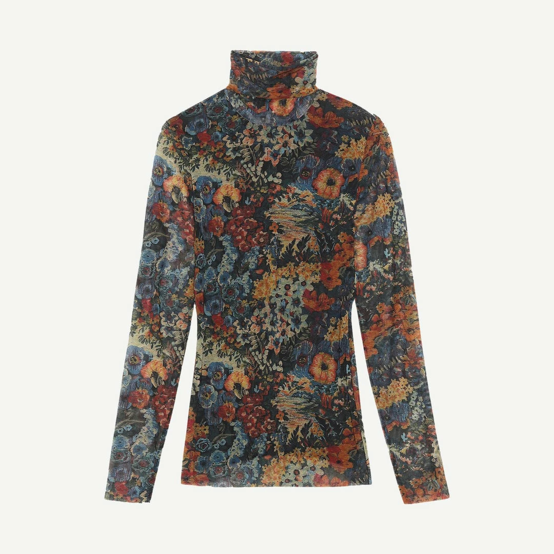 Ganniโs signature basic, this is a sheer turtleneck top in printed mesh in their new season print.