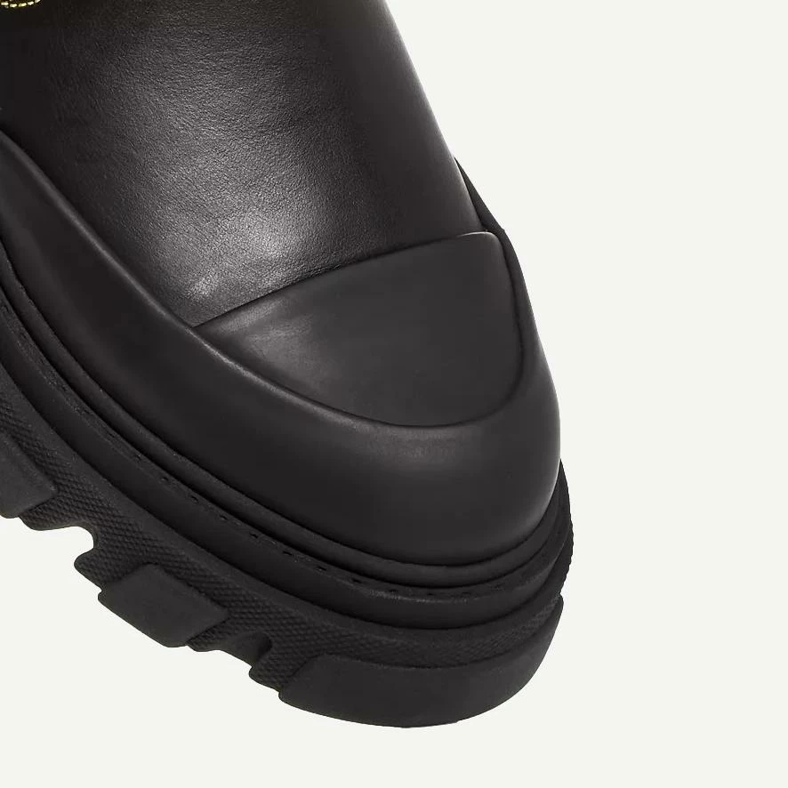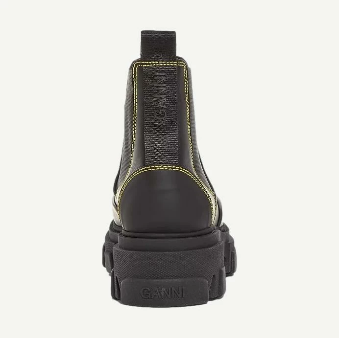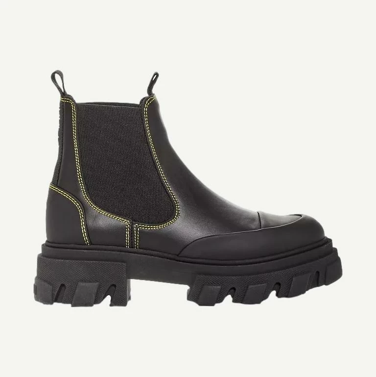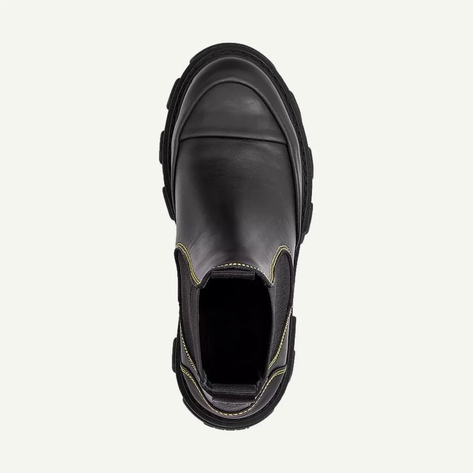 Signature Chelsea boots in leather, featuring super chunky ribbed rubber soles and toe caps.