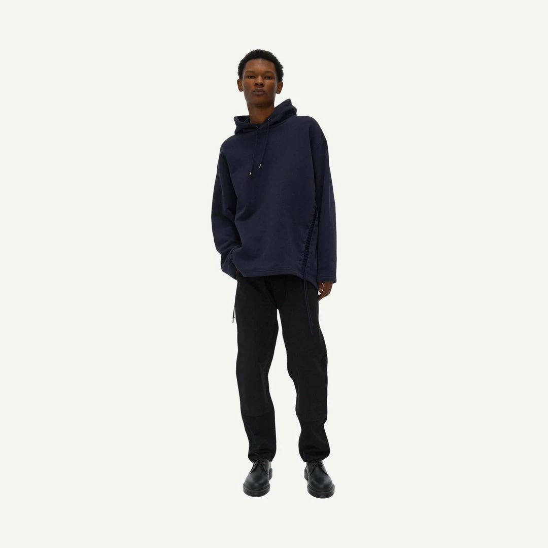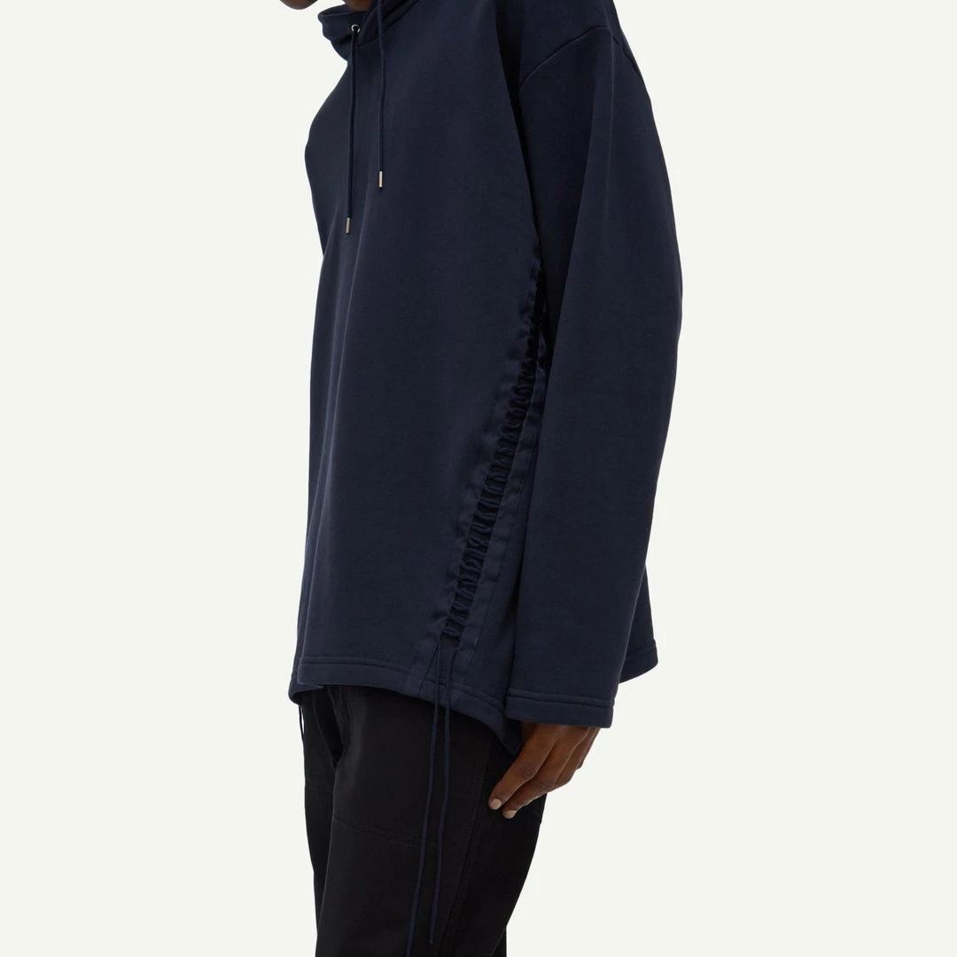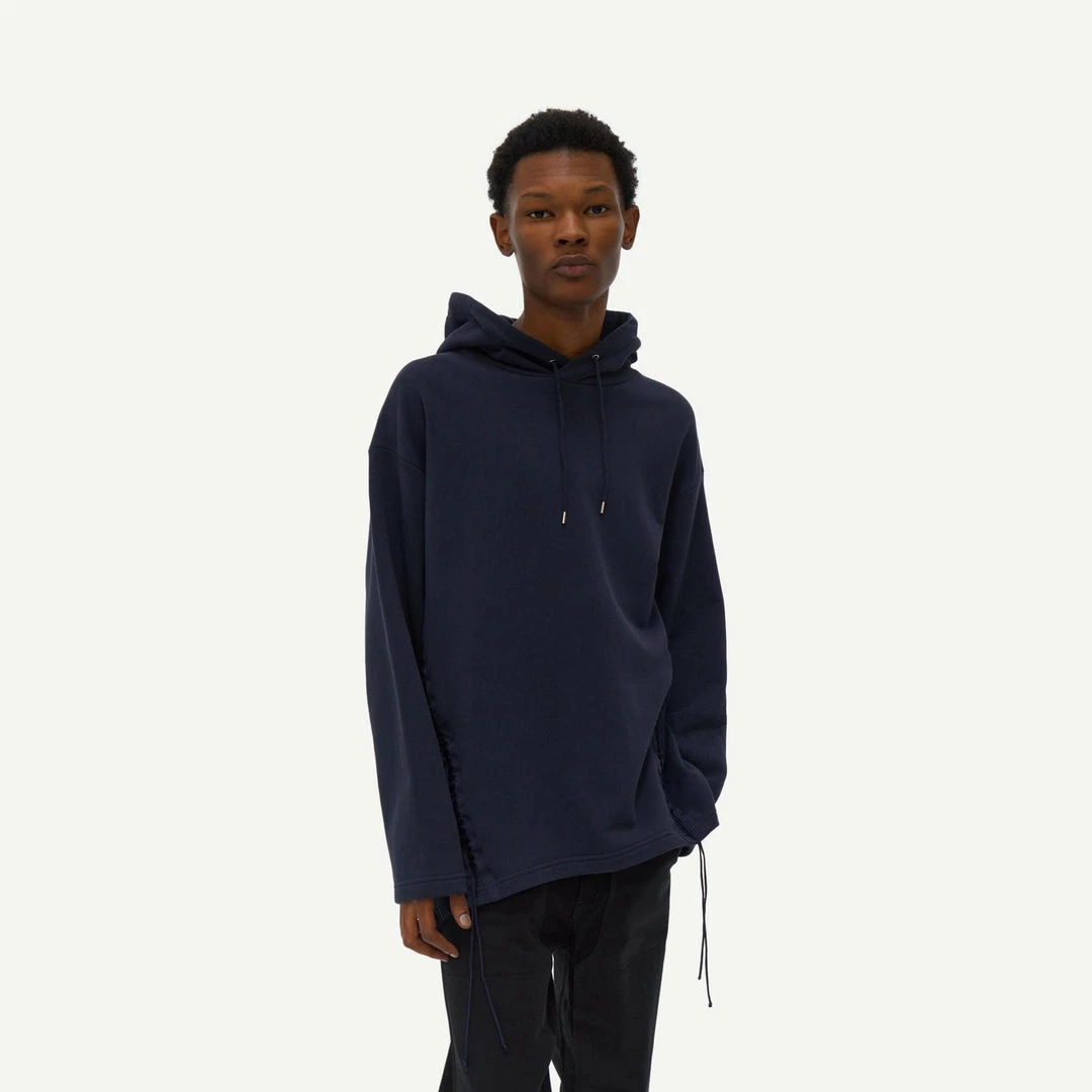The Helmut Lang Laced Hoodie is made of a French terry cotton with an asymmetrical hem and lacing details in the from