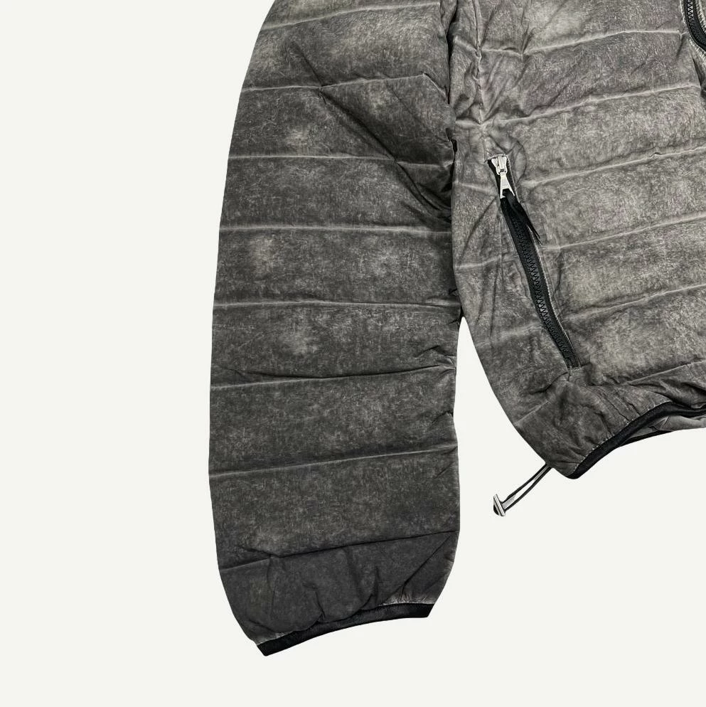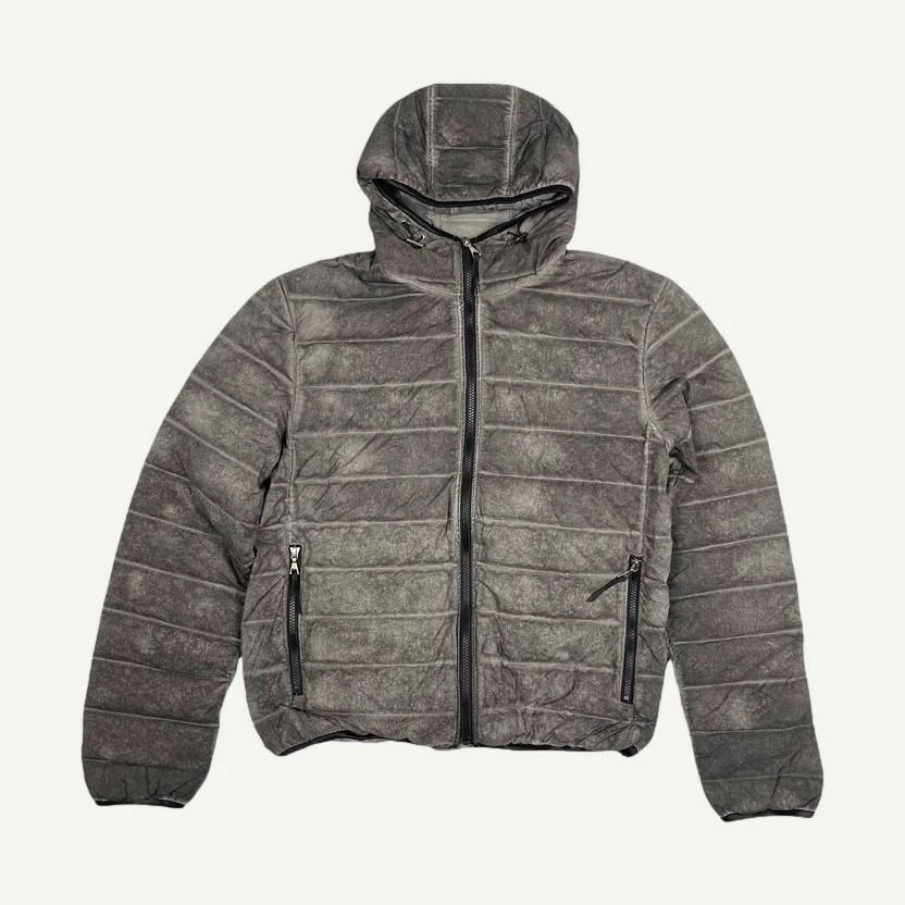 Down-filled quilted nylon jacket in ‘HVAC Wash’. Bungee style adjustable cinch closures at the hood and waist. Front zip closure. Zippered pockets at waist. Elasticized cuffs and waist. Tonal lining. Fully lined.