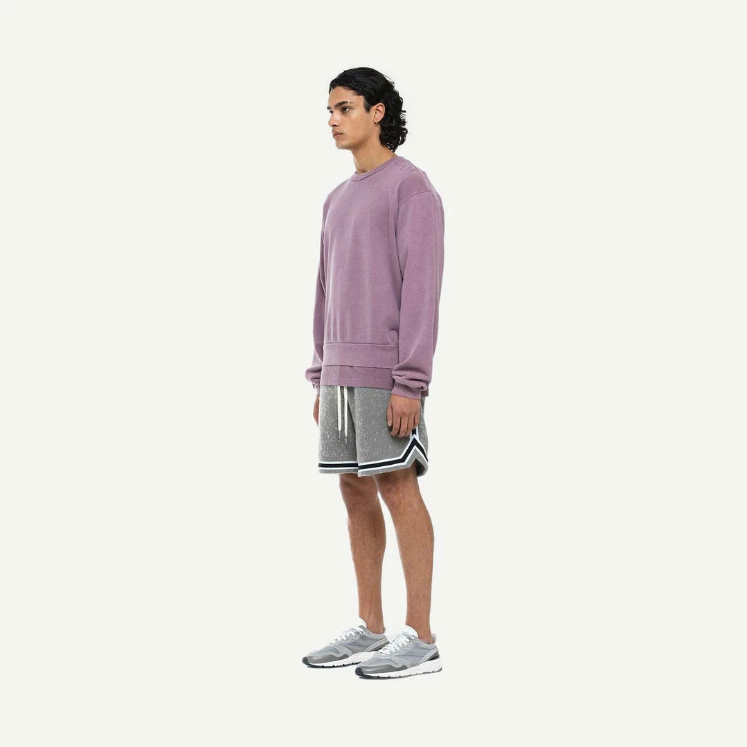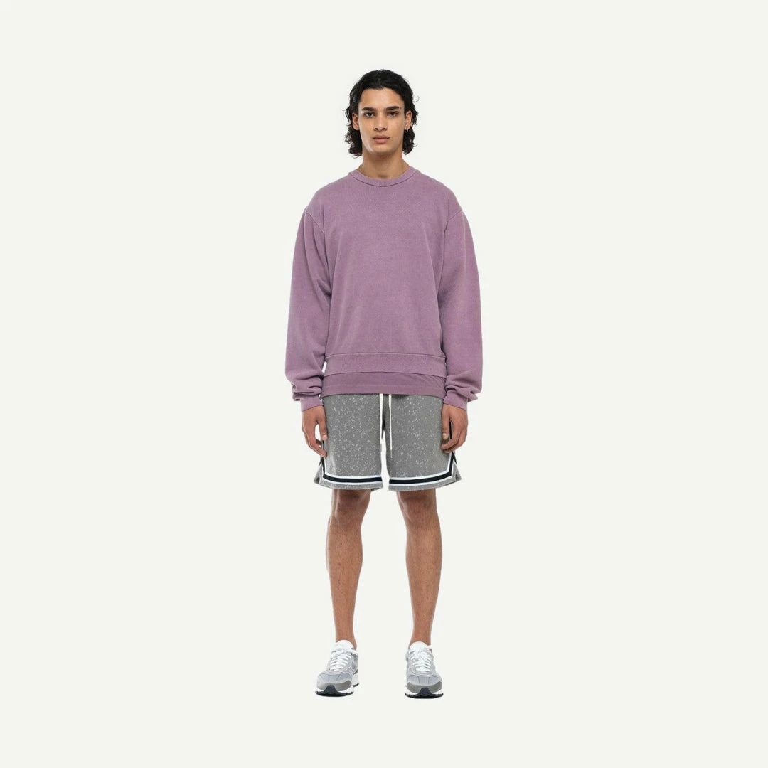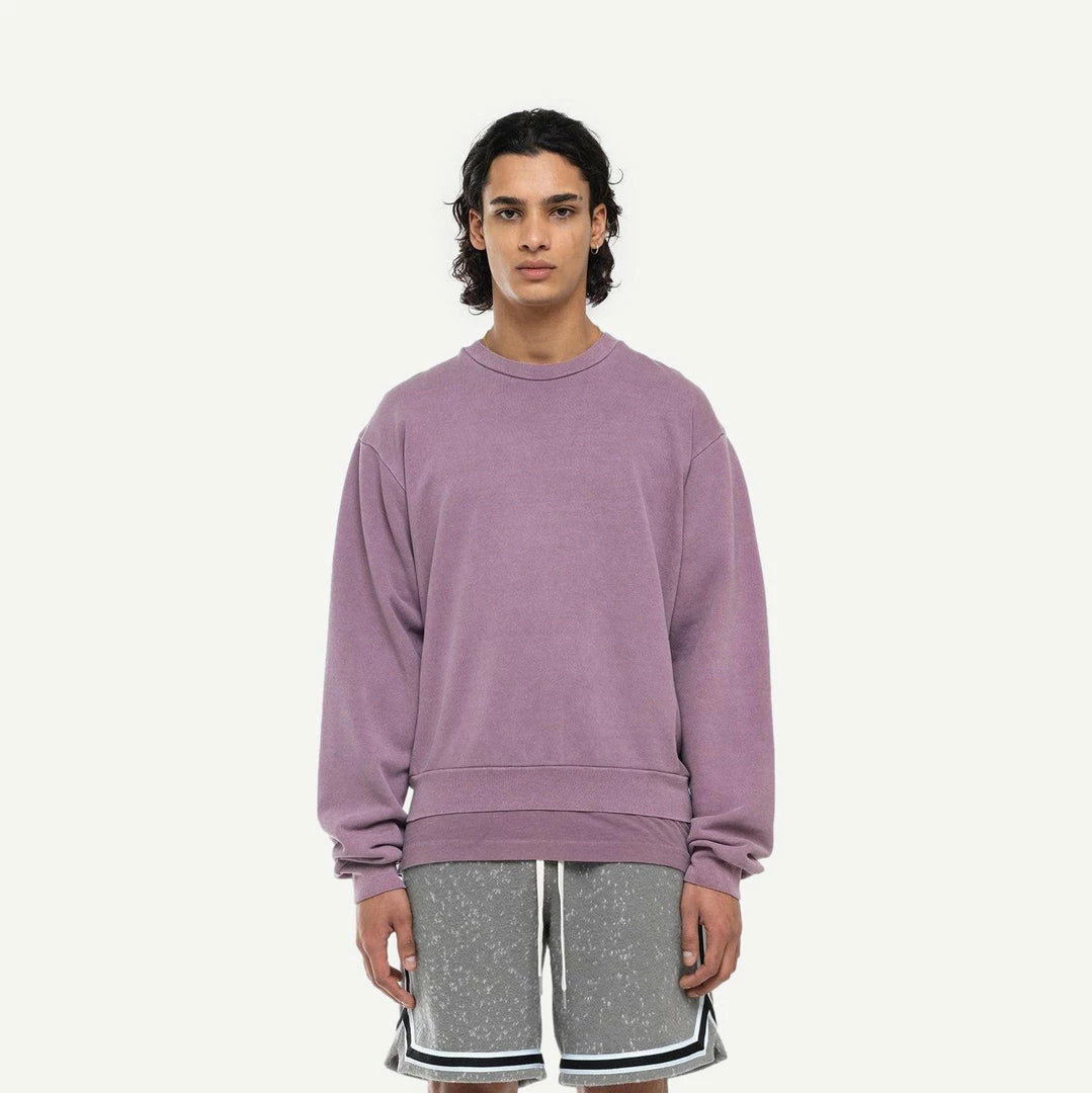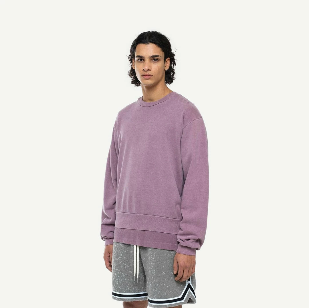 Relaxed fit crewneck in mid-weight three end terry with a cozy fleeced backside. Ribbed collar, cuffs and hem.