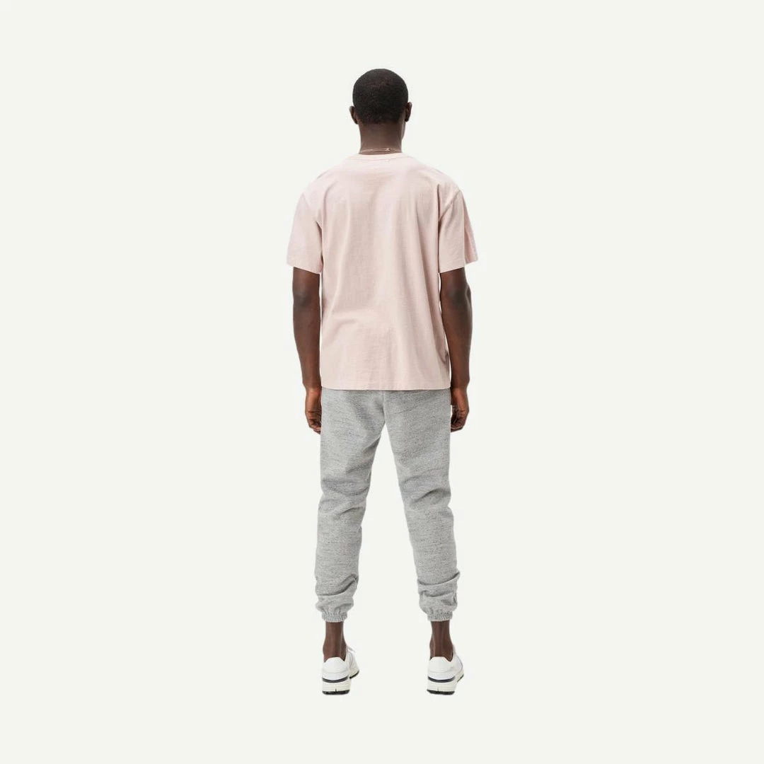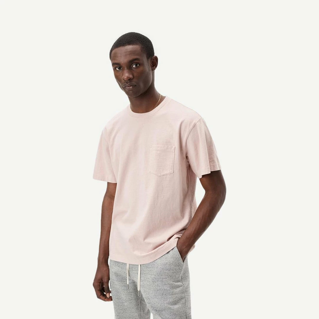 Relaxed fit tee with unfinished edges and a hem that is cut slightly longer in front than back. This tee is designed with midweight recycled cotton for slightly textured fabric. Made in Los Angeles.