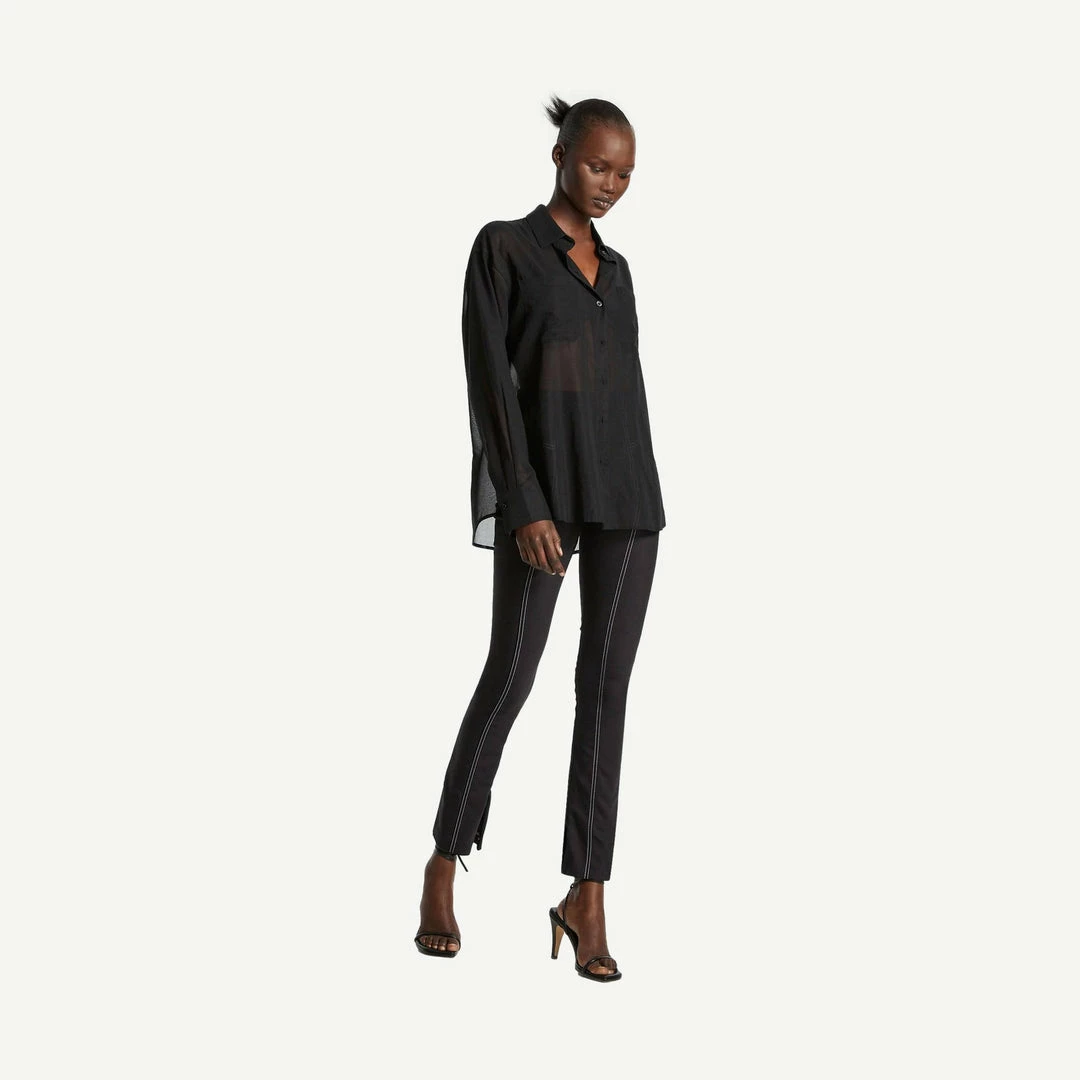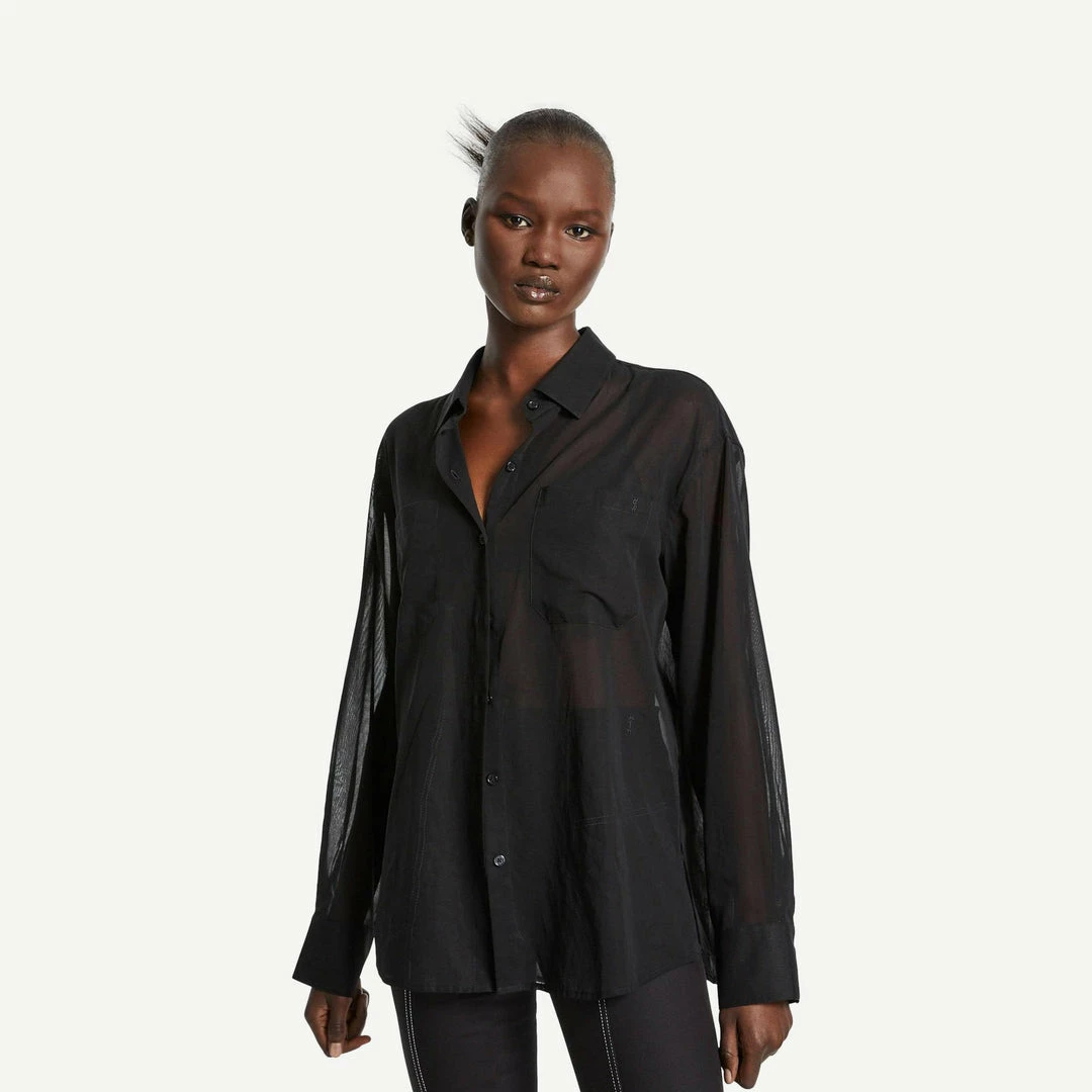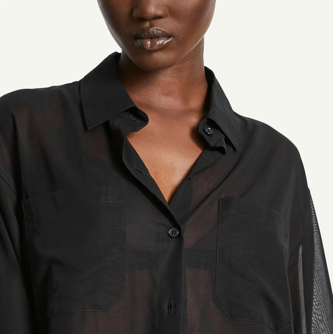 The Cher Shirt is a classic black collared shirt, with long sleeves and a curved hem, in a relaxed fit. Made from a premium cotton voile for a soft hand feel.