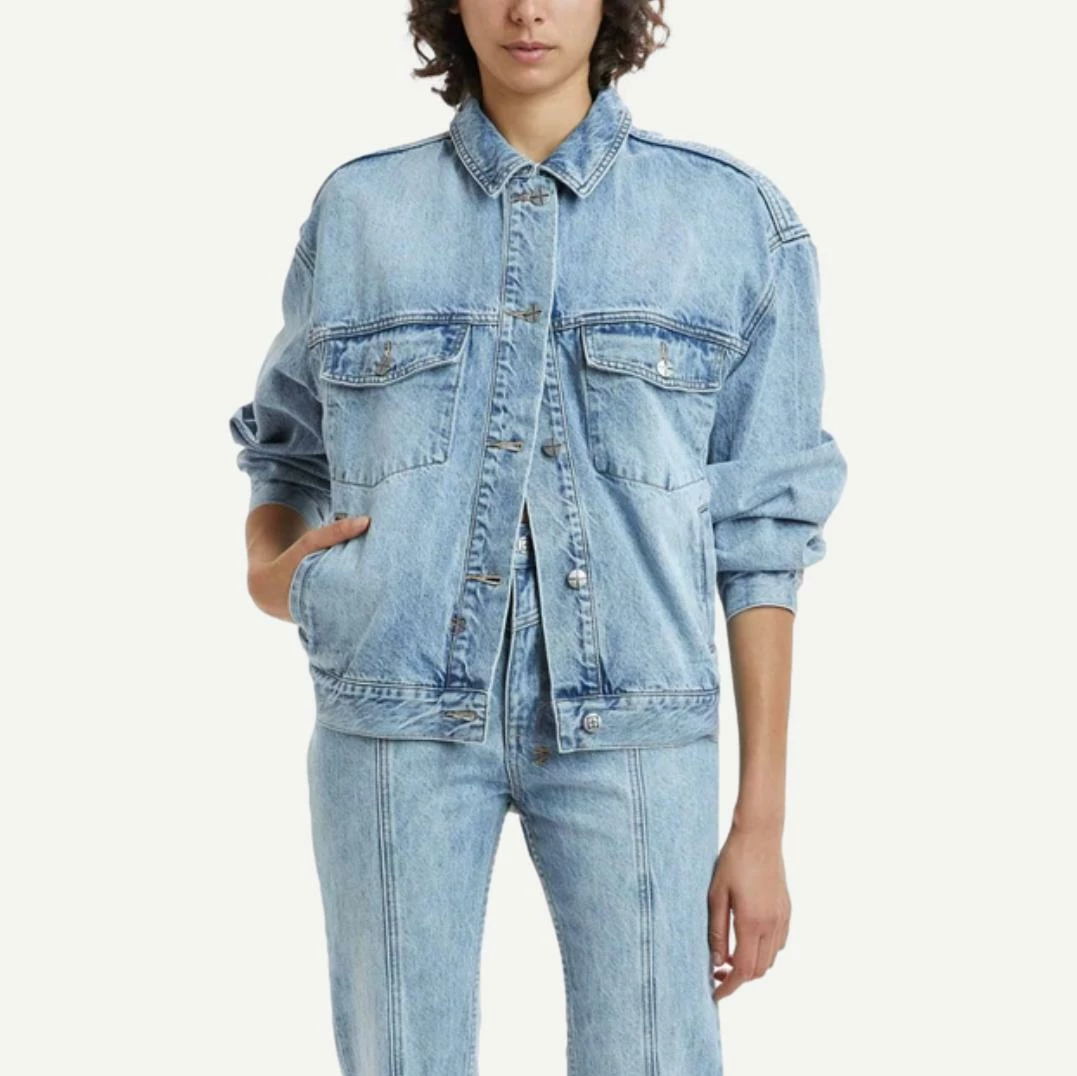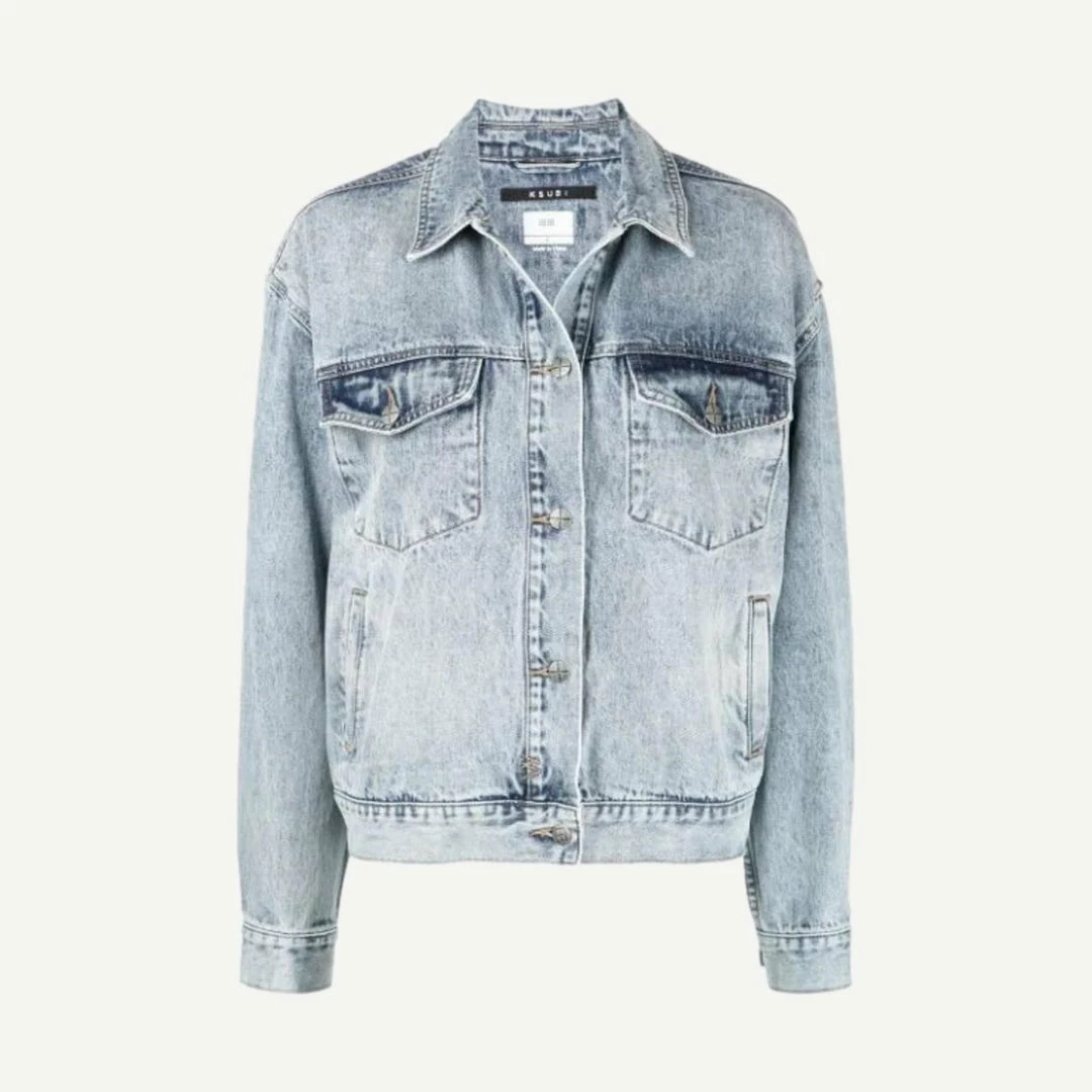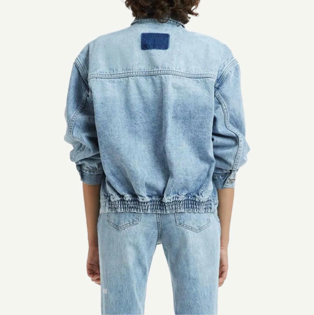 Bomber shape fit jacket featuring dropped shoulders and elasticated back waitband. Made from a premium ridgid denim in vintage bue with heavy stone wash. Details with signature Ksubi branding.