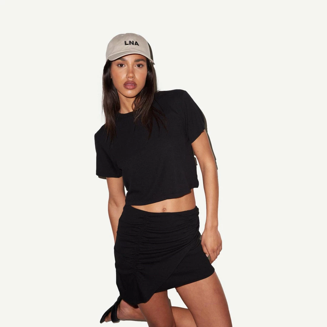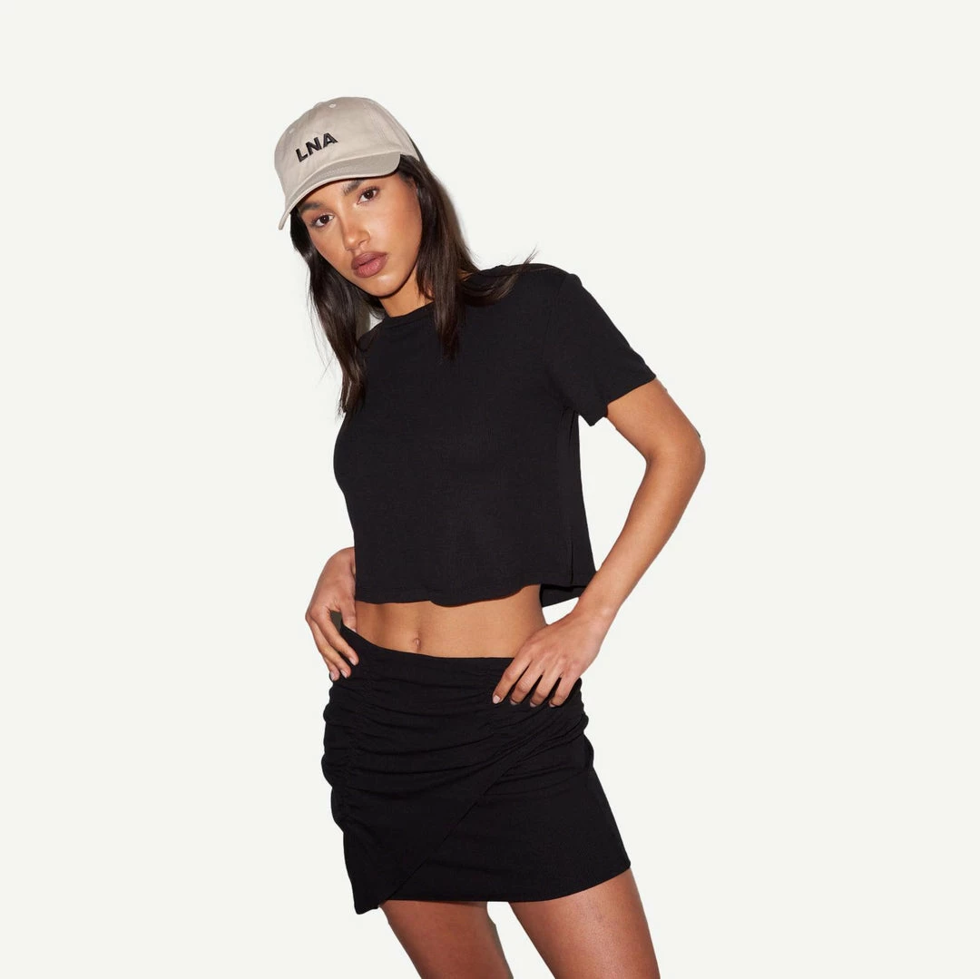Slightly cropped tee in ribbed material