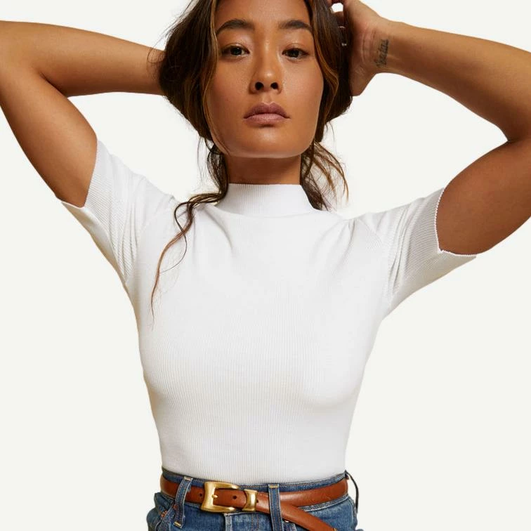 Everyone needs this sleek, roll neck tee in Organic Pima Cotton Rib in their closet. Pairs perfectly with anything and everything. Really.