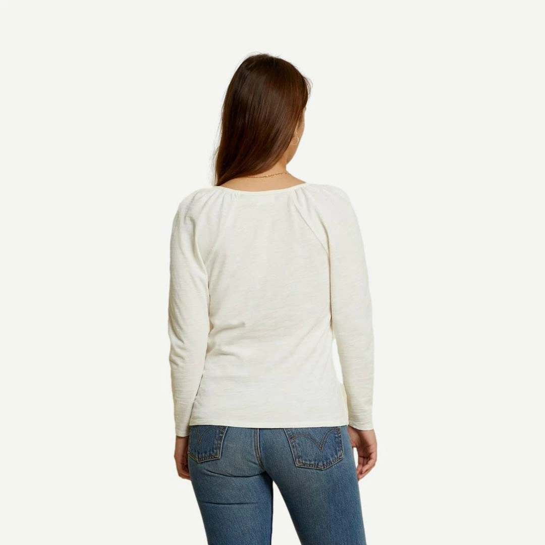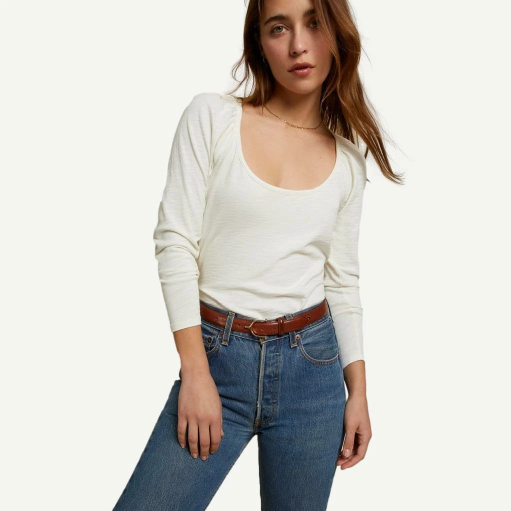 You’ll be wearing this classic scoop-neck tee with delicate shirring at the shoulders in softly structured Heavy Slub fabric on repeat.