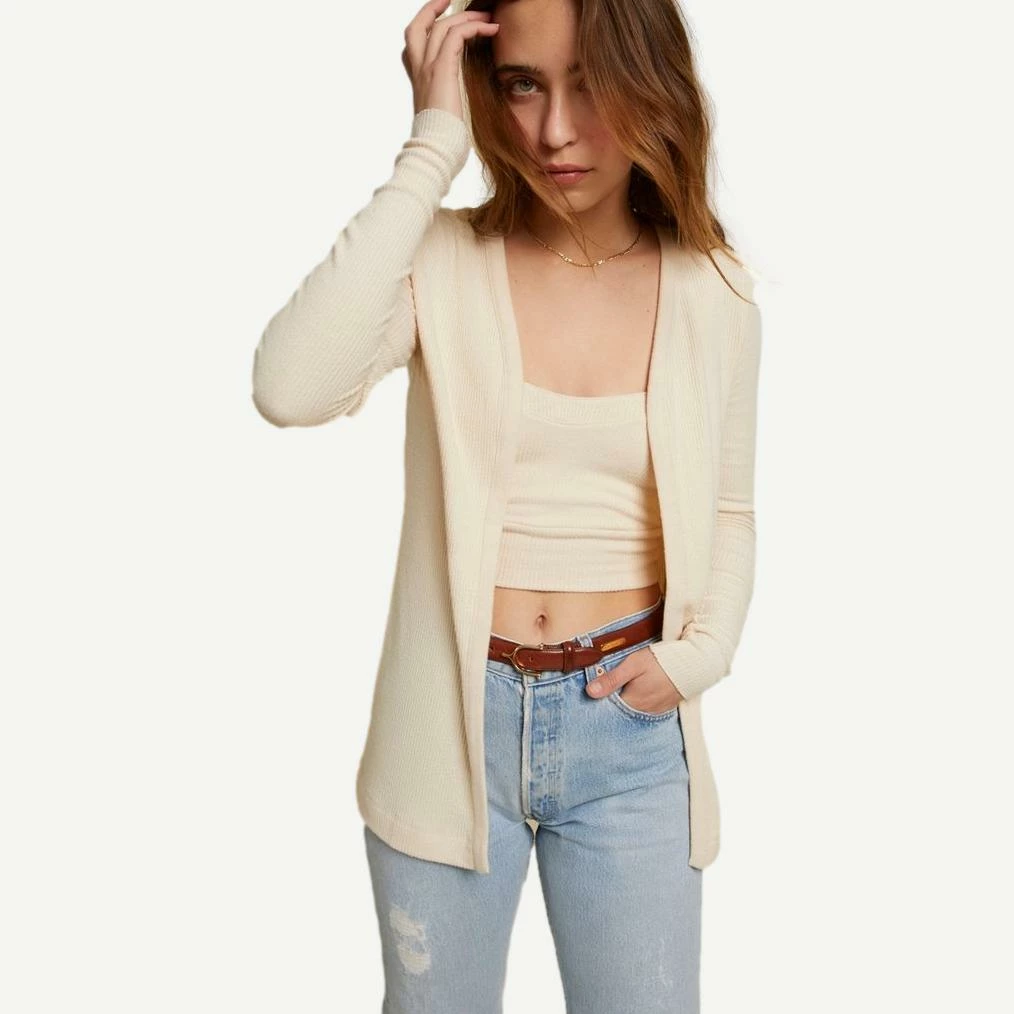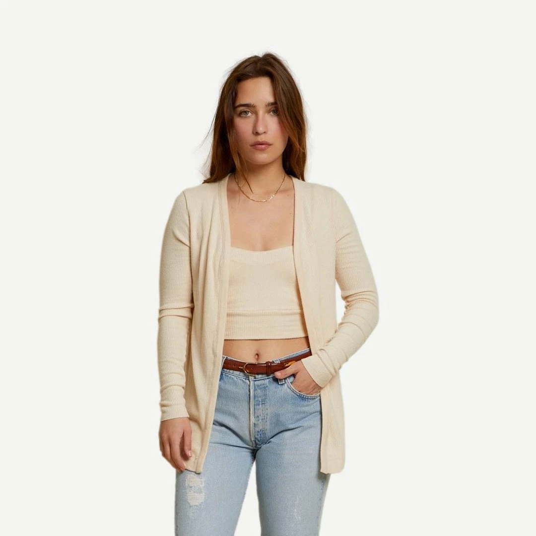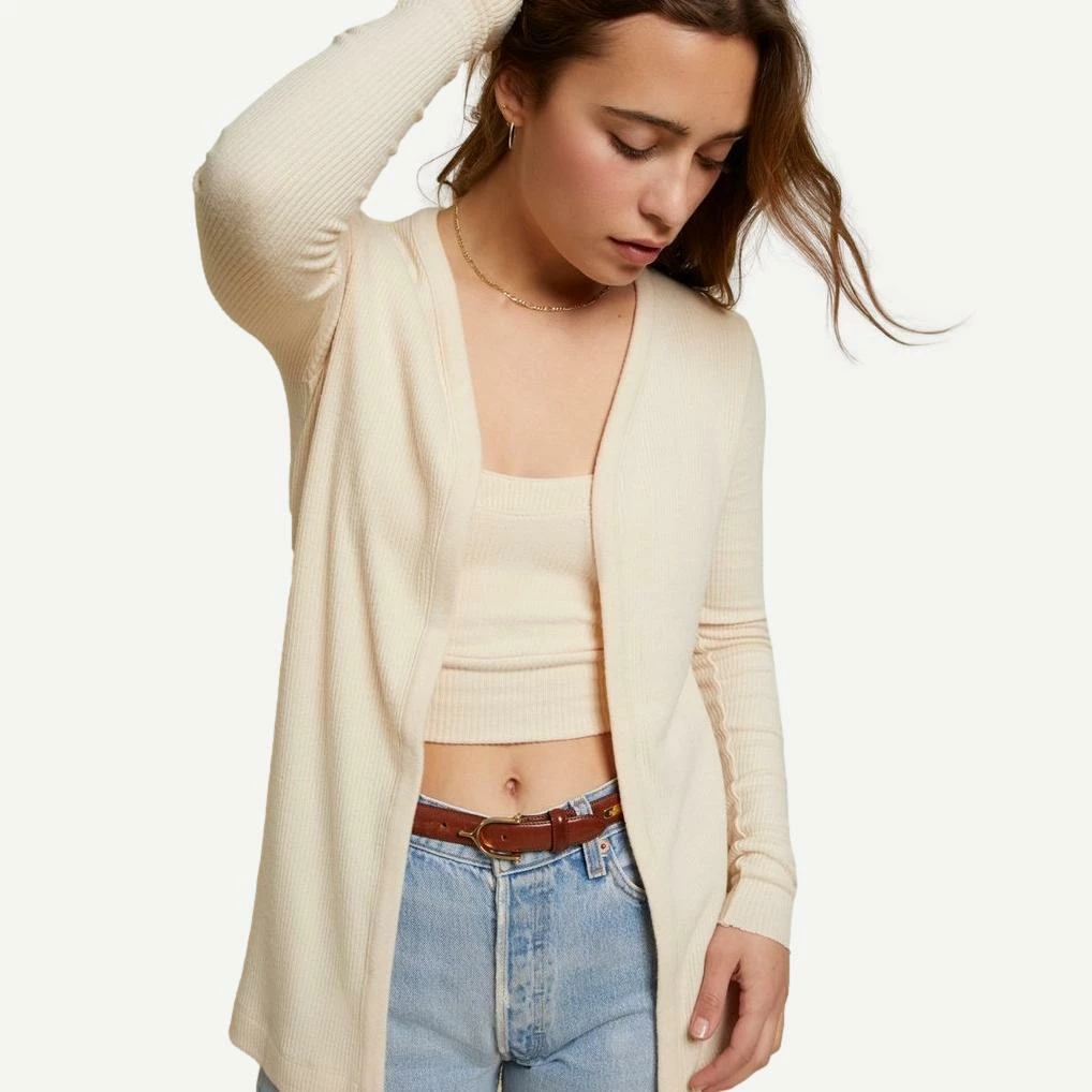 An easy cardigan in ribbed sweater knit to throw on over just about anything.
