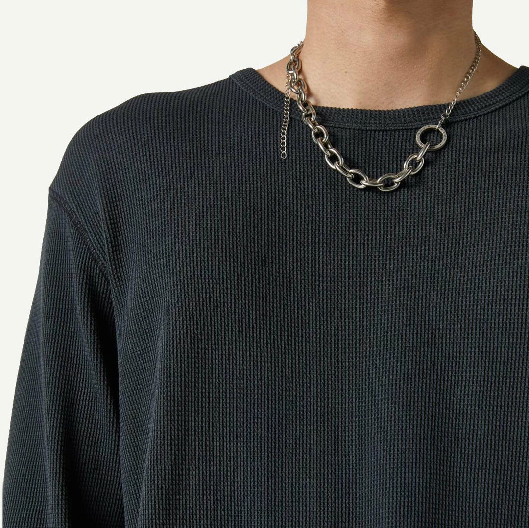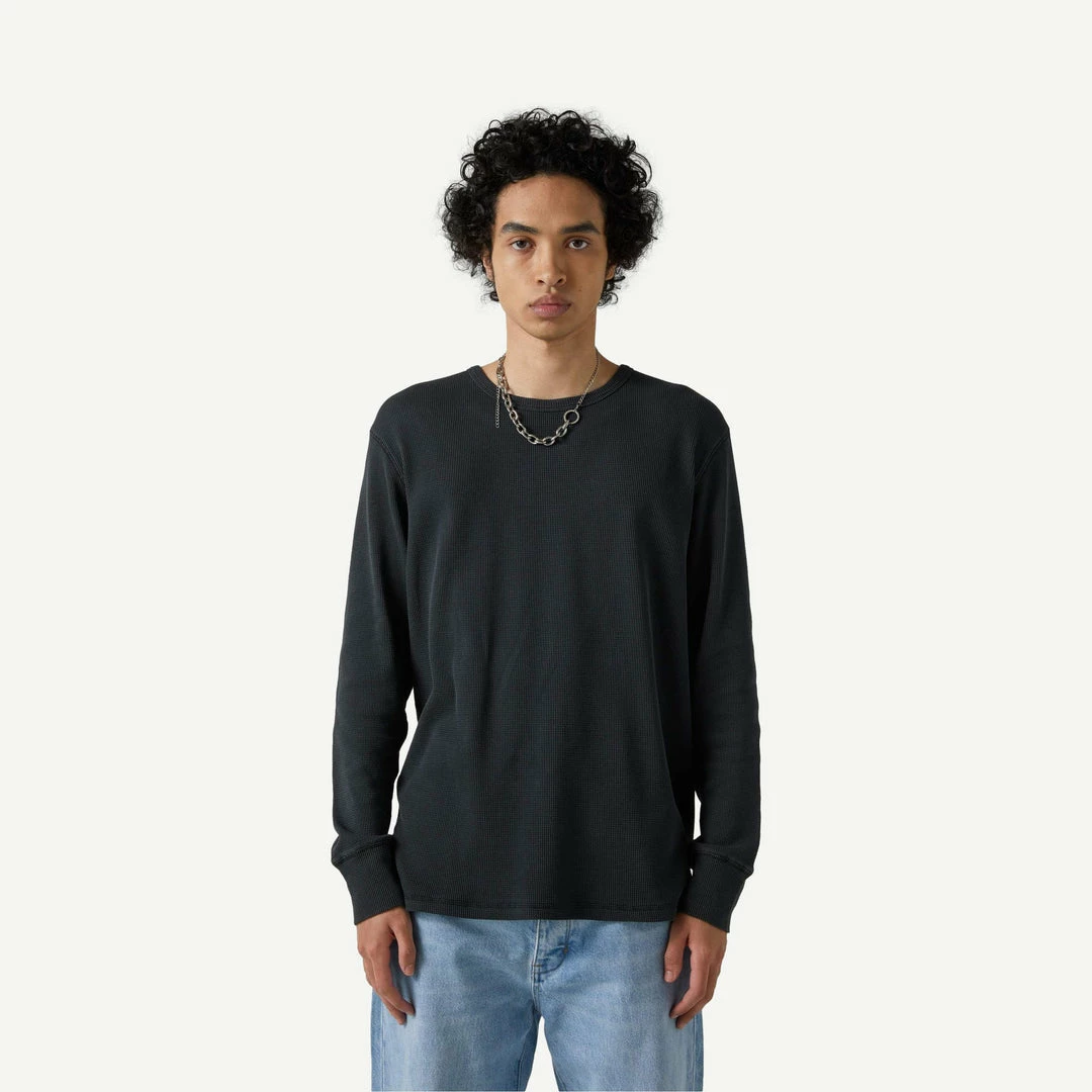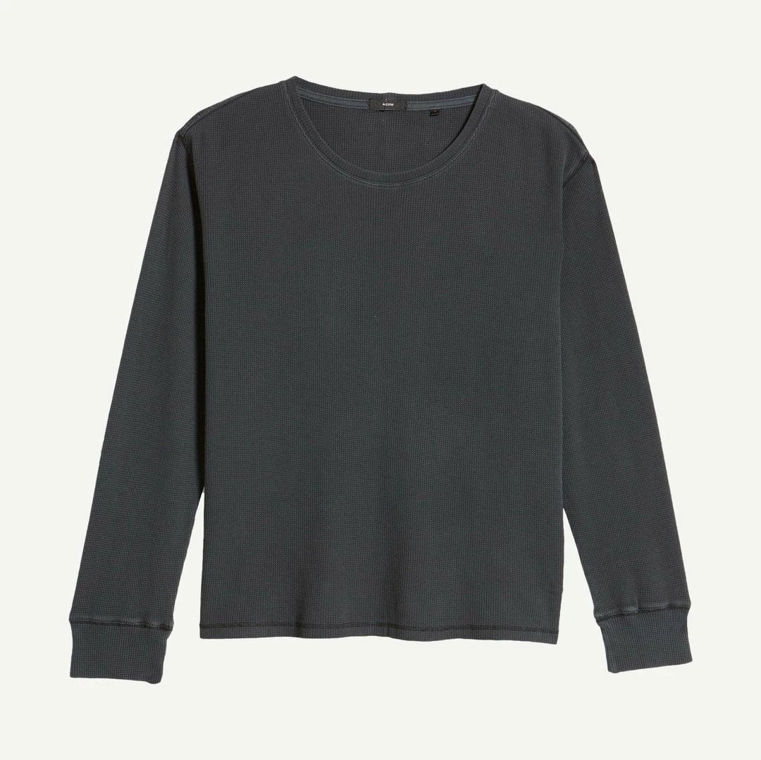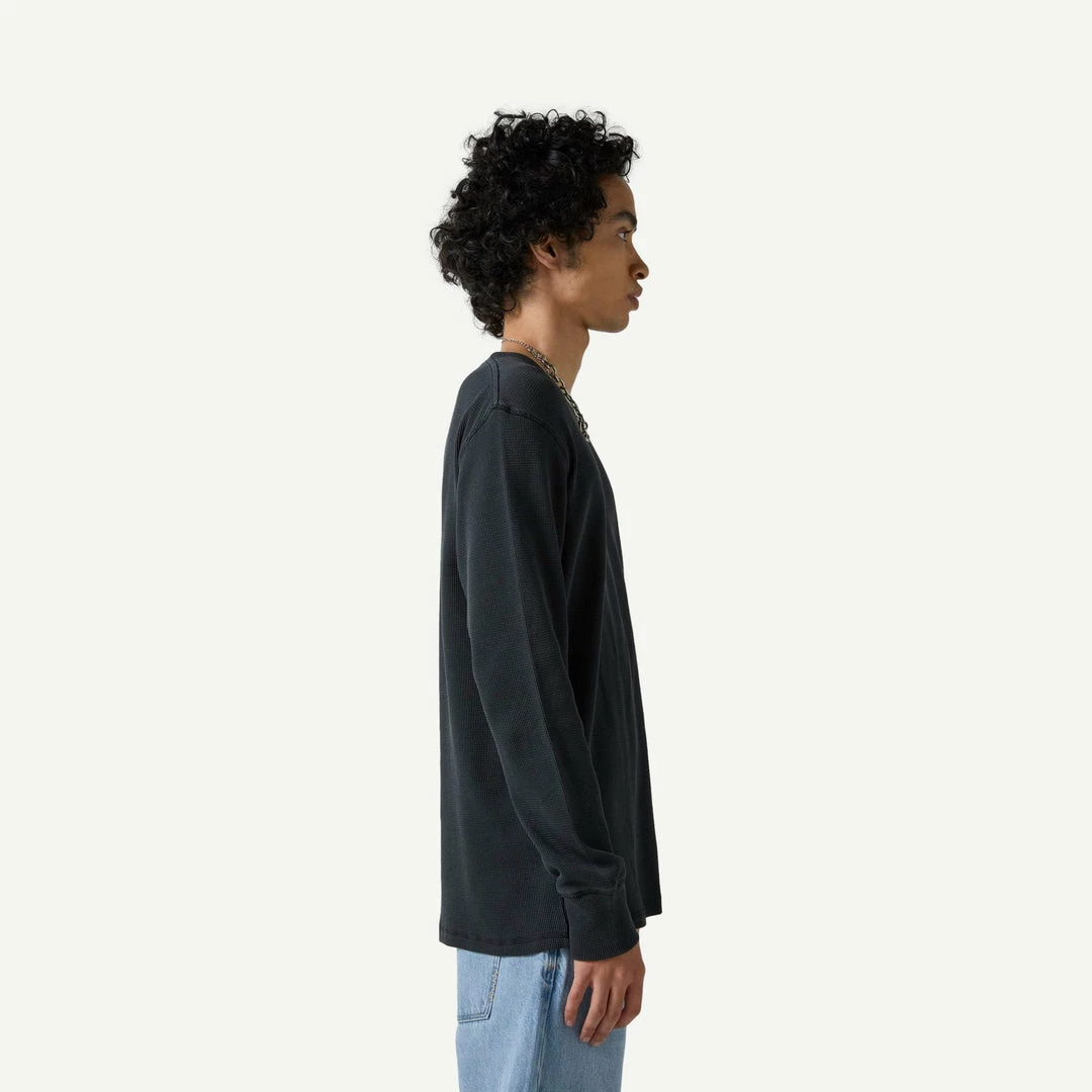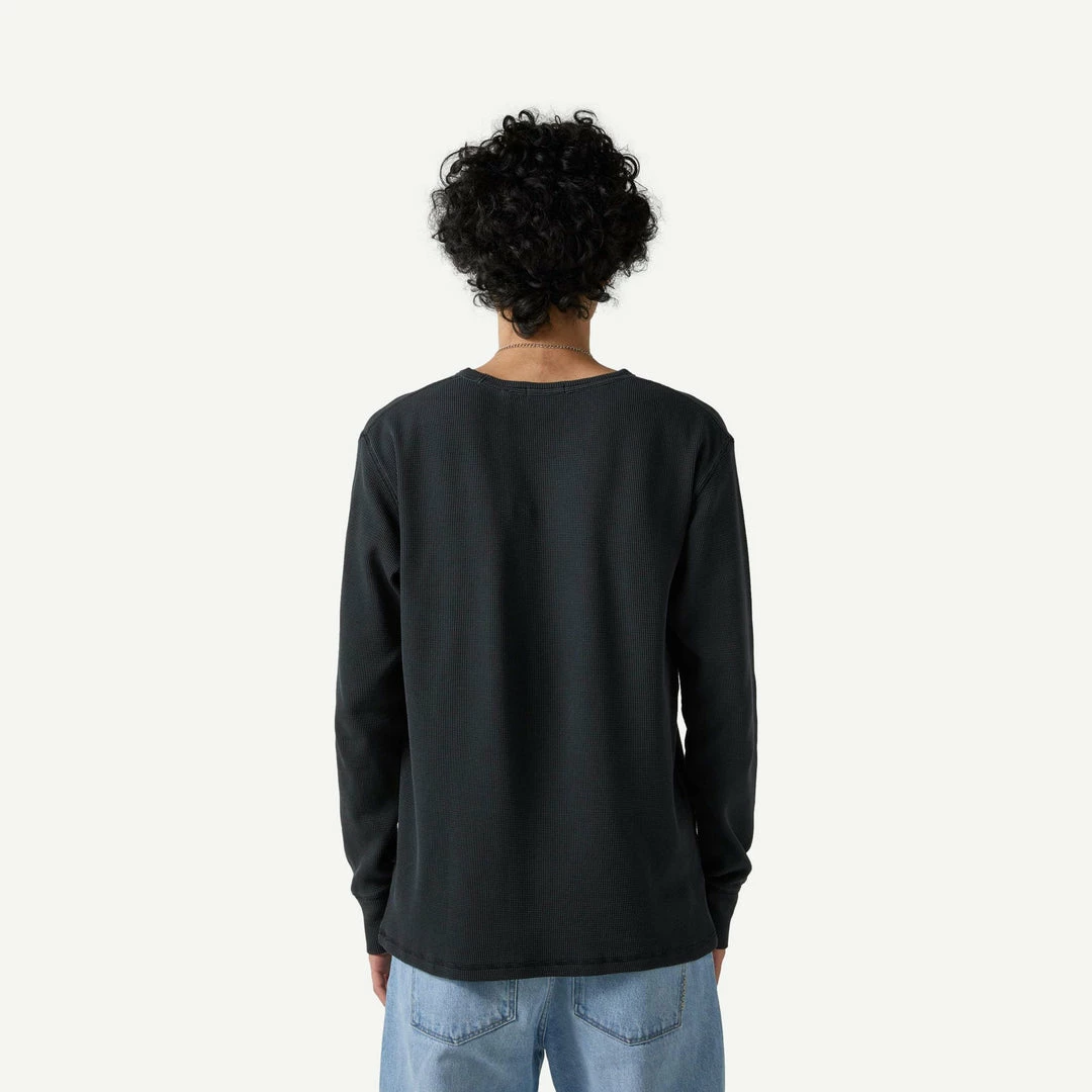 An instant old favorite, this waffle-knit shirt sports the comfort of cotton with plenty of stretch and a faded finish that says you’ve worn it forever.