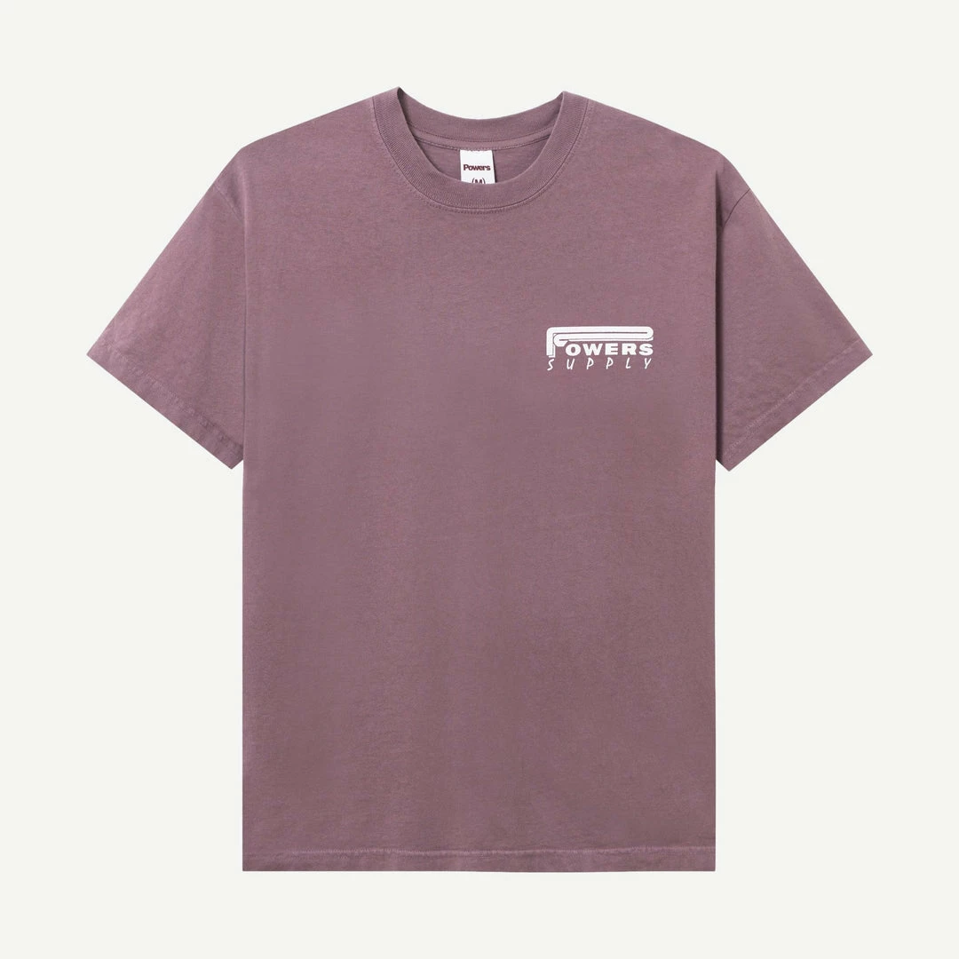 Custom heavy-weight dyed and washed 100% cotton tee. Front chest and back screen prints.