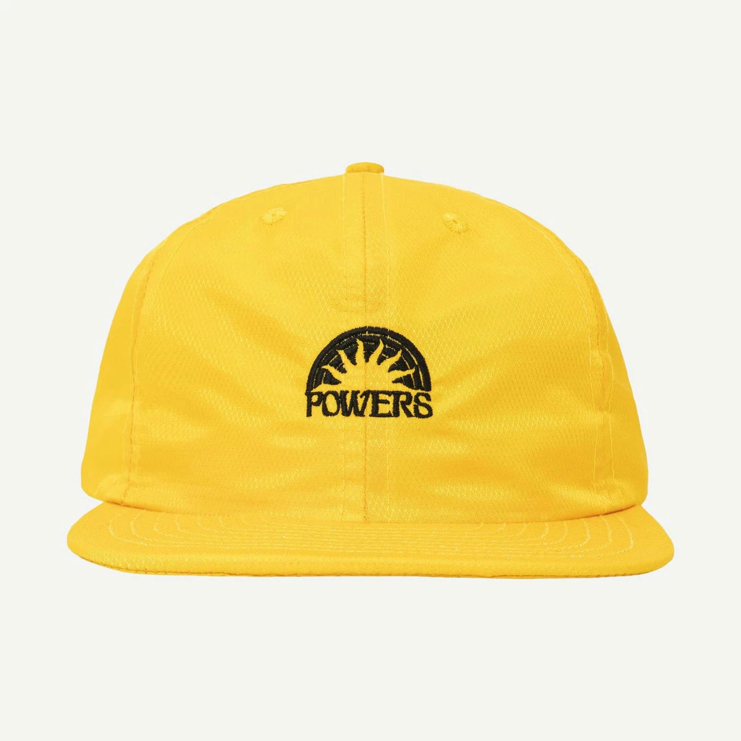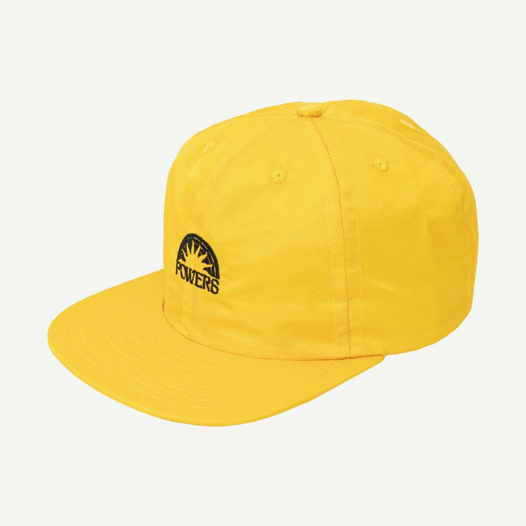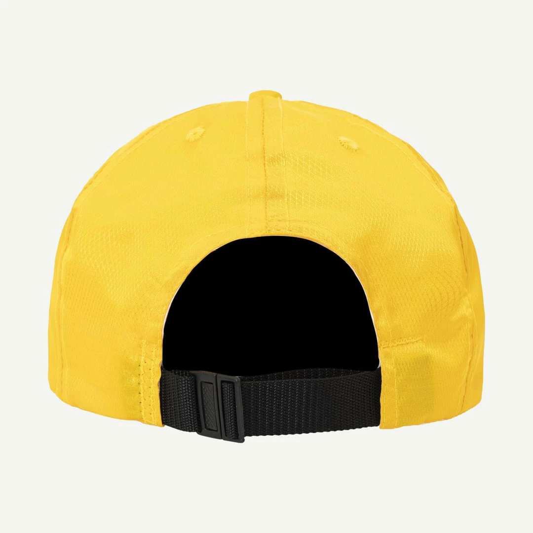 6-panel unstructured nylon strap back cap. Front embroidery detail.
