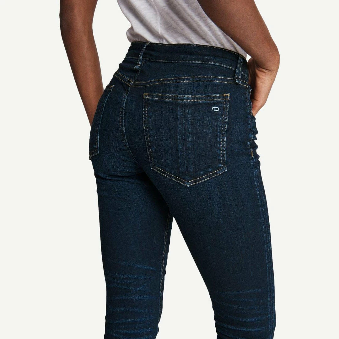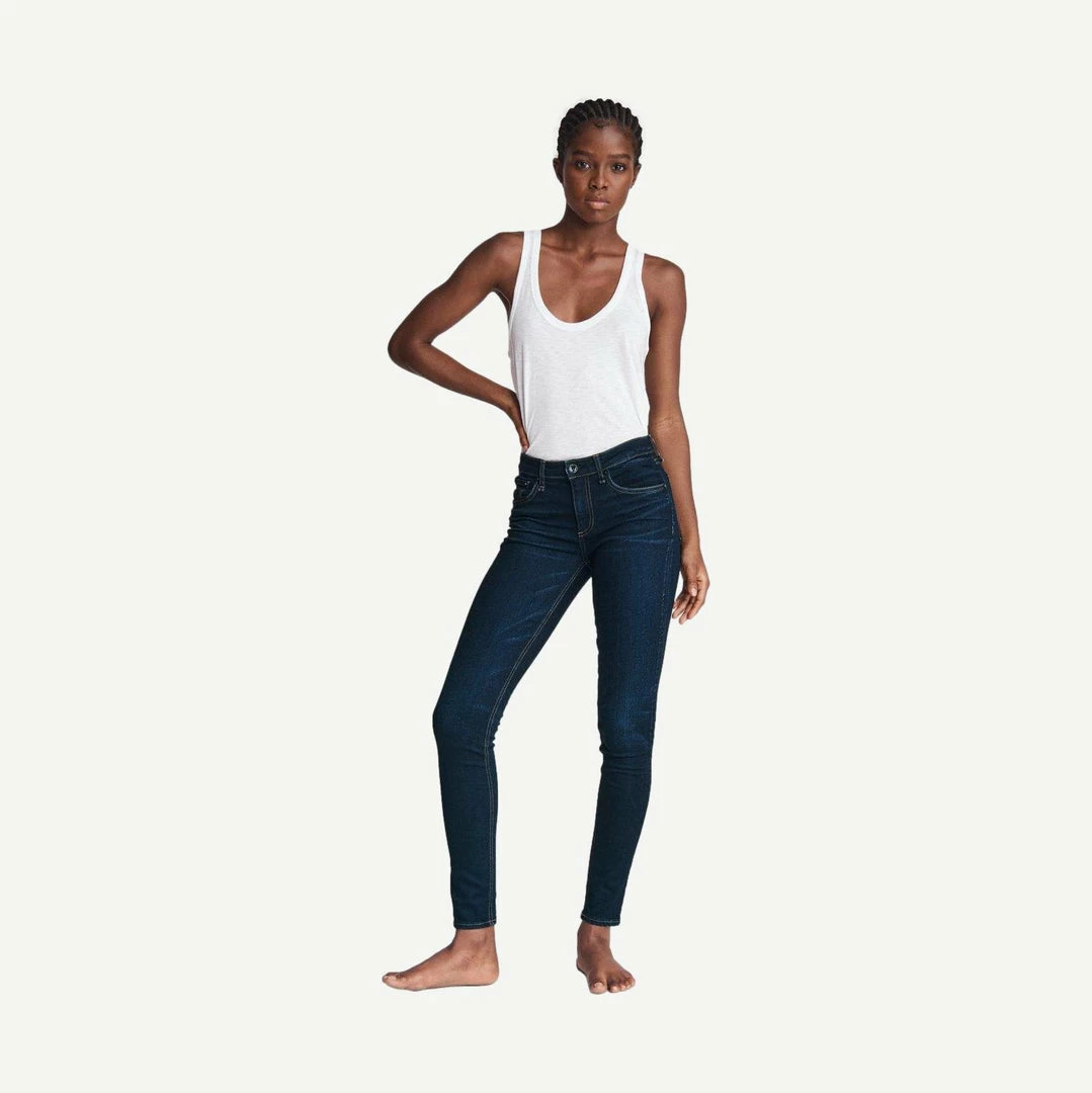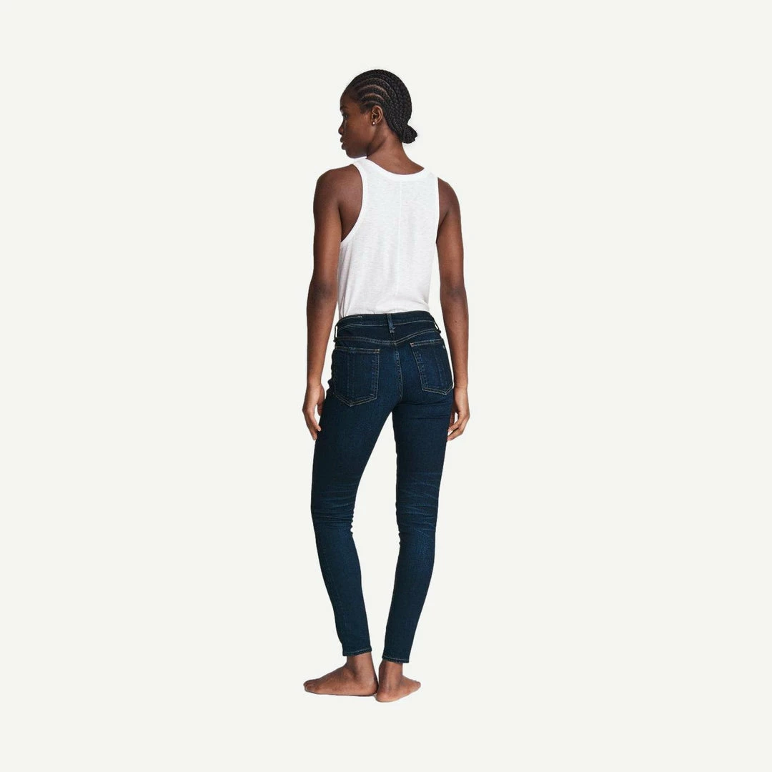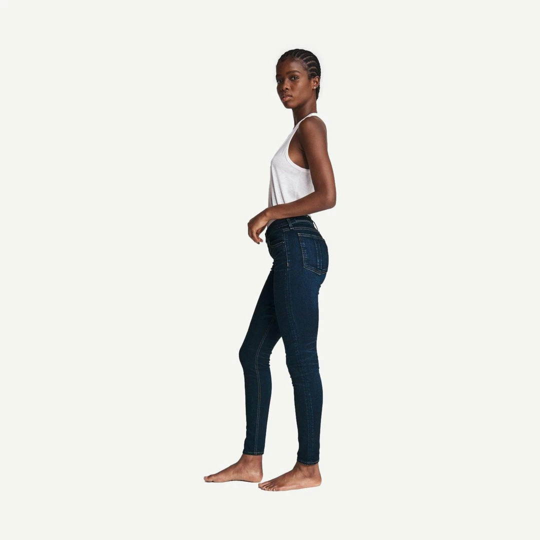 Esme is a dark medium-indigo washed Japanese stretch denim cut in our iconic Cate: a perfected mid-rise silhouette. Sitting at the natural waist, The Cate Mid-Rise Ankle Skinny is slim through the hip and thigh with a skinny leg. Zip fly and a clean finished hem.