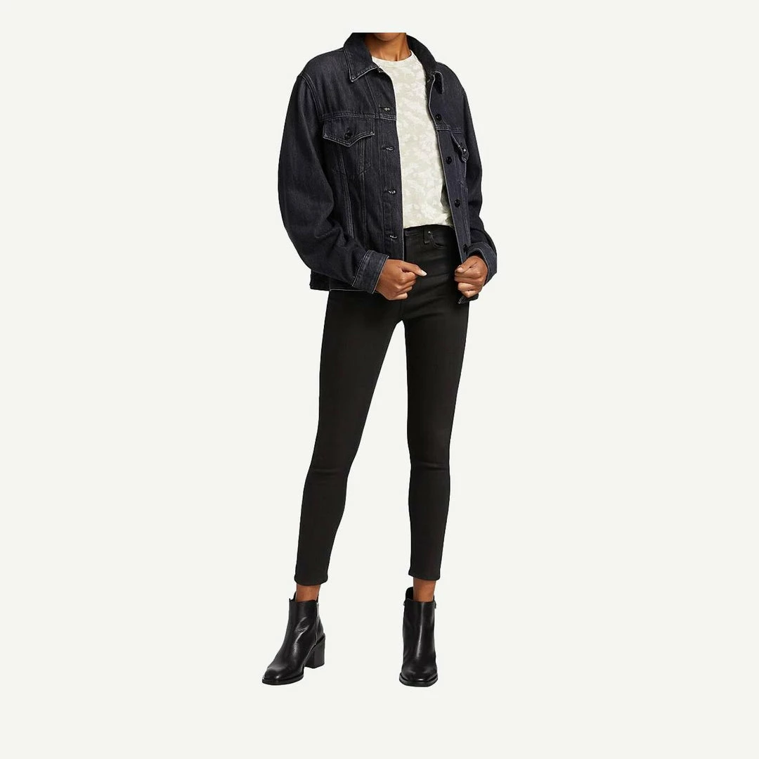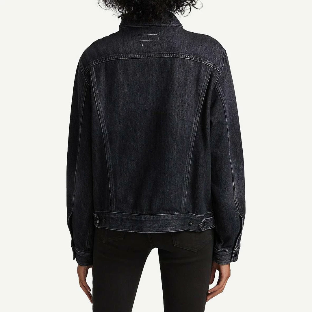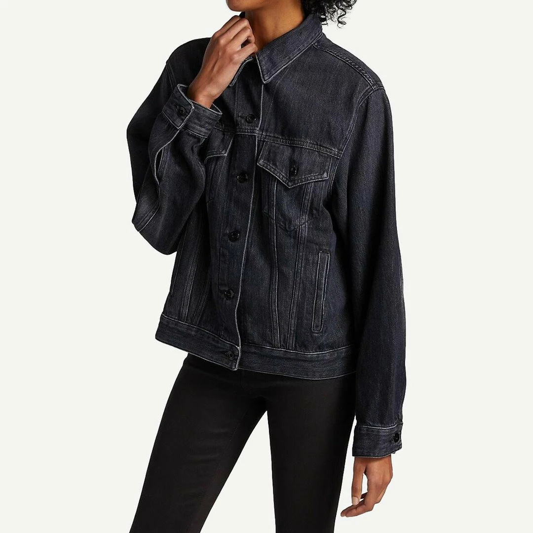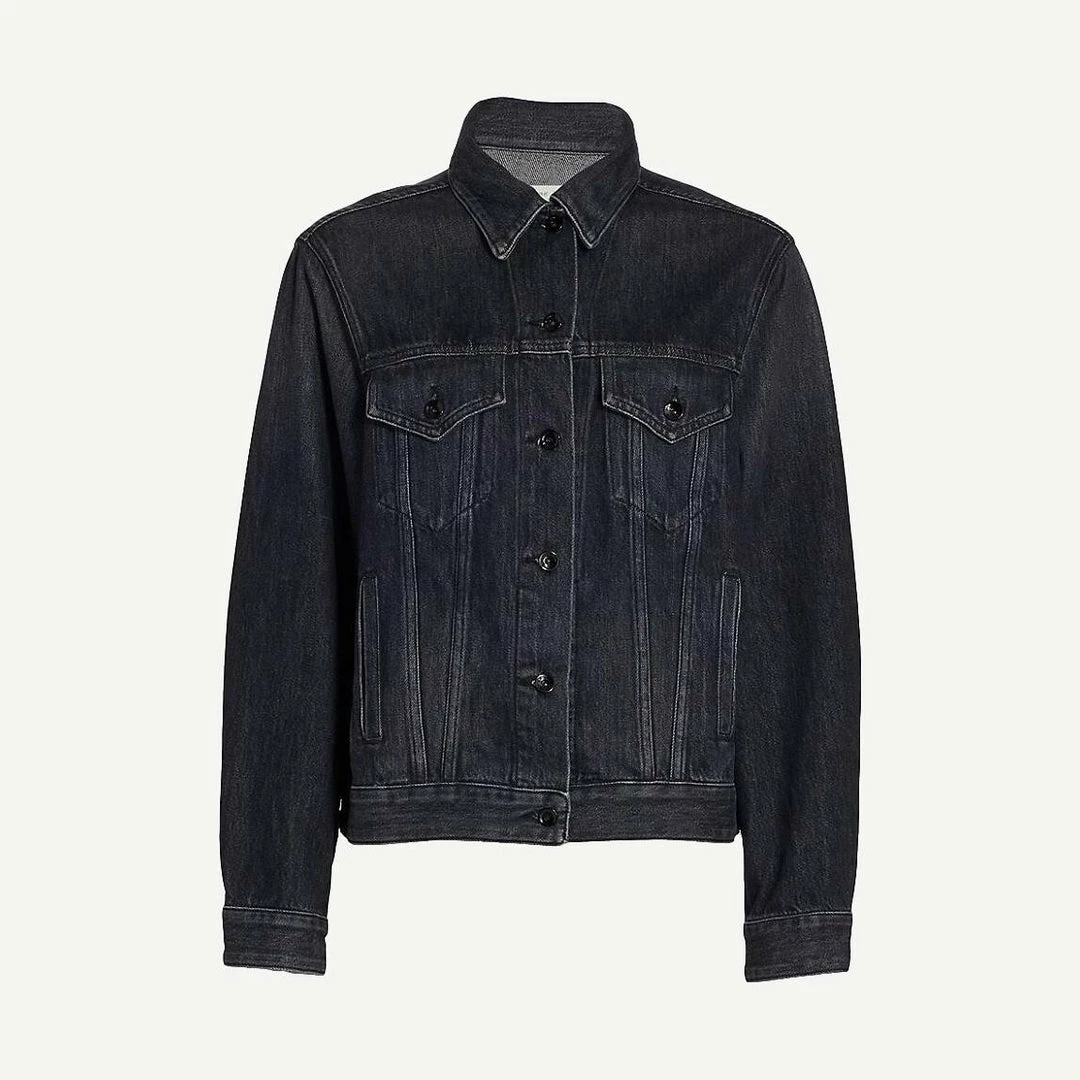Denim jacket in a boxy silhouette with sleek tonal hardware.