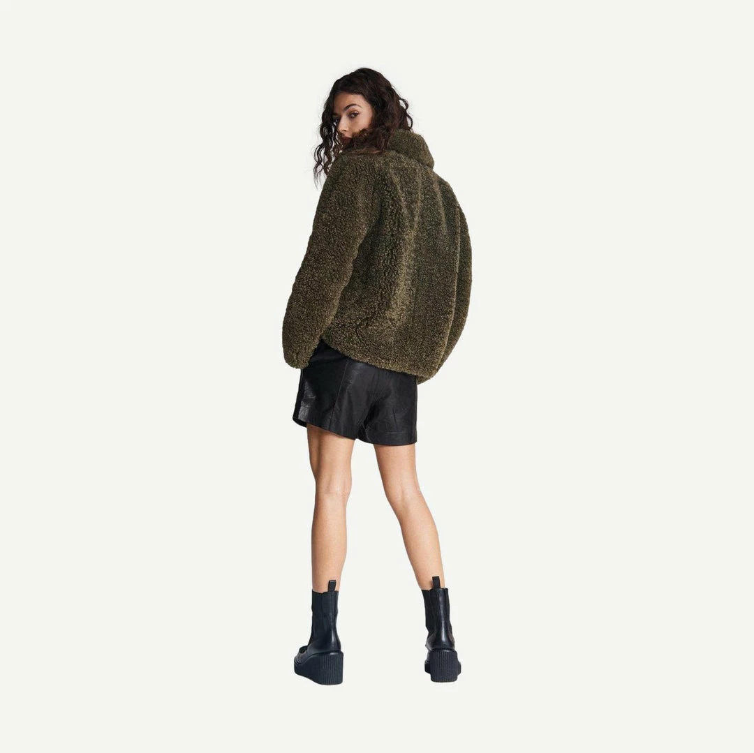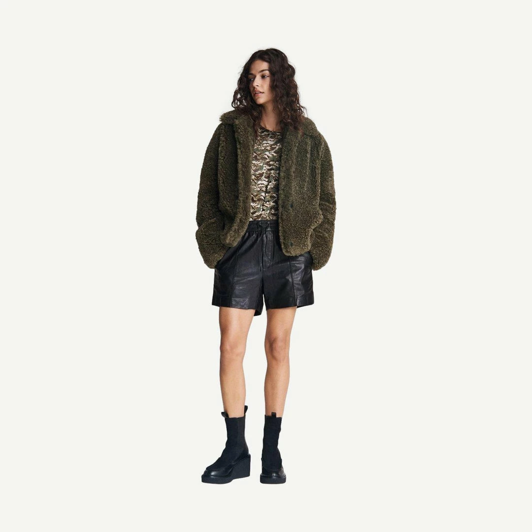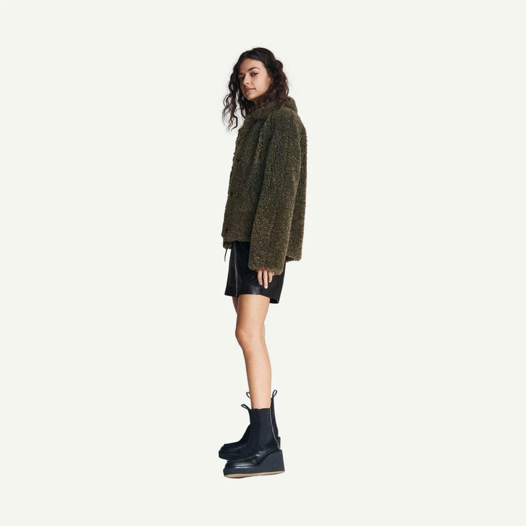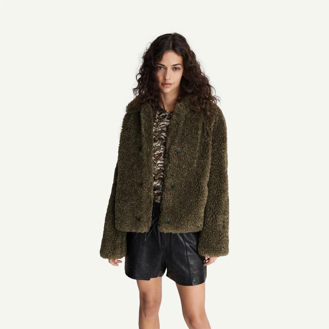 Tis the season for iconic outerwear. Hesper is a slimmed down, cropped fit faux fur jacket to elevate everyday looks. Features signature horn buttons and hip slash pockets.