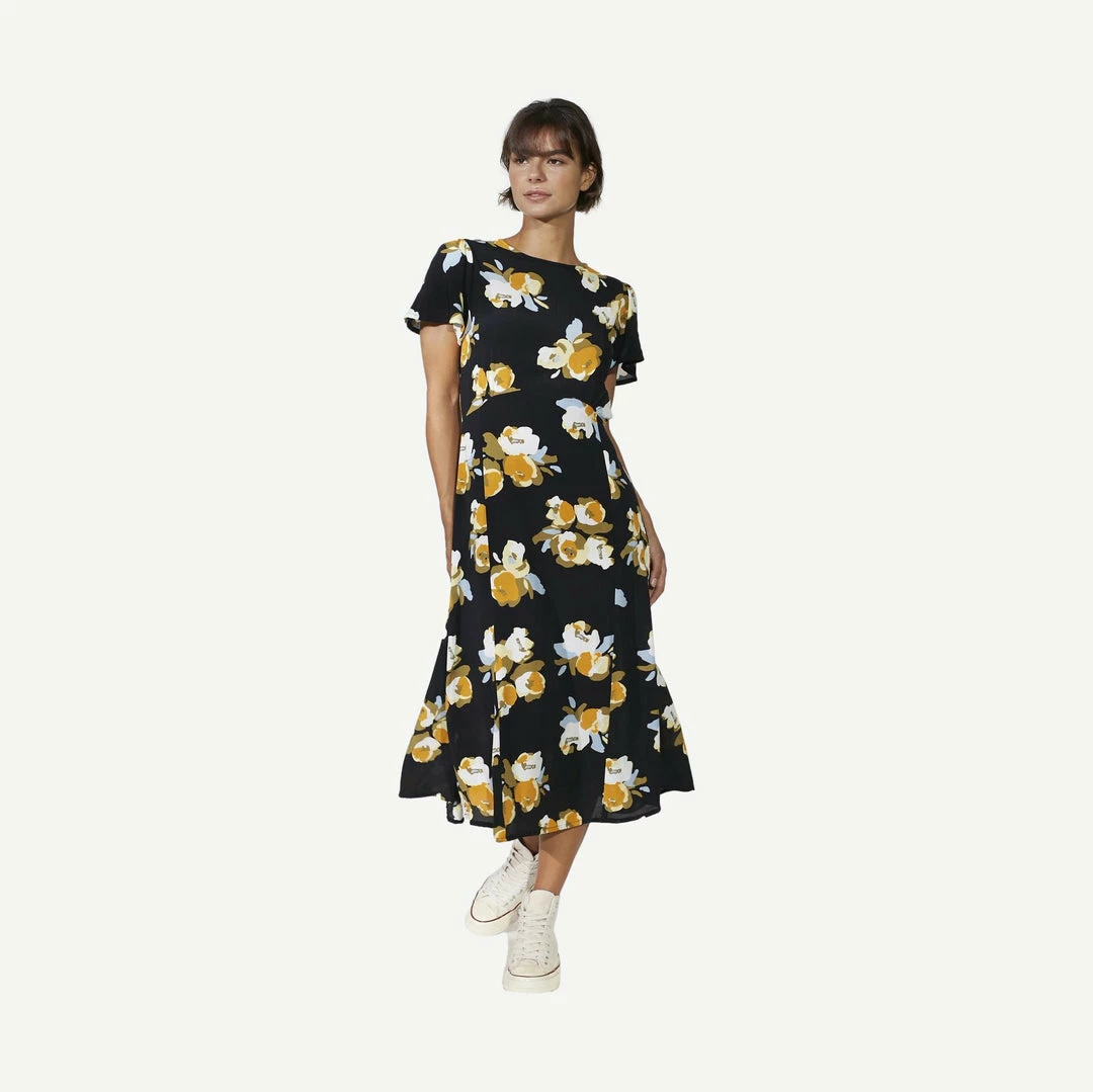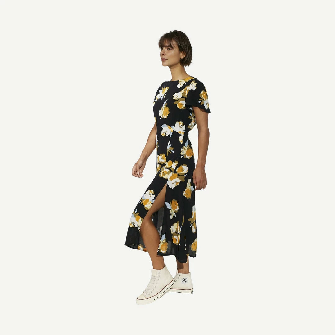 The Carter Split Dress is a stunning handmade and screen printed piece featuring rue stoic’s exclusive Marigold Floral print. This stunning dress will be your go to grab all year round, the ultimate wardrobe must have, the Carter Split dress is an update of their best selling Cora split dress. Featuring a raised neckline, open back detailing, with a tie neckline, this stunning dress won’t disappoint. Perfect for dressing up or down, pair this beauty with your favorite boots, heels or stylish flats for a match made in heaven.
