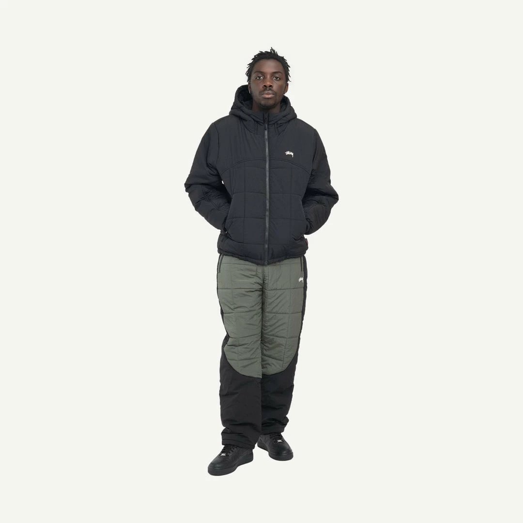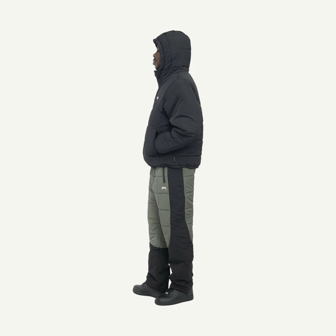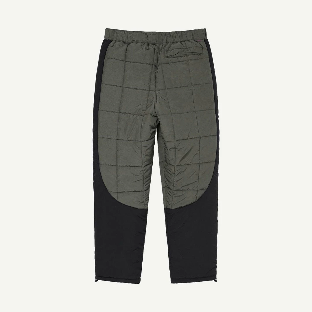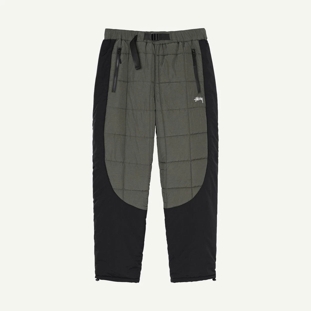 Elastic waist pant with webbing belt, quilted exterior and Primaloft® Hi-loft Ultra insulation.
