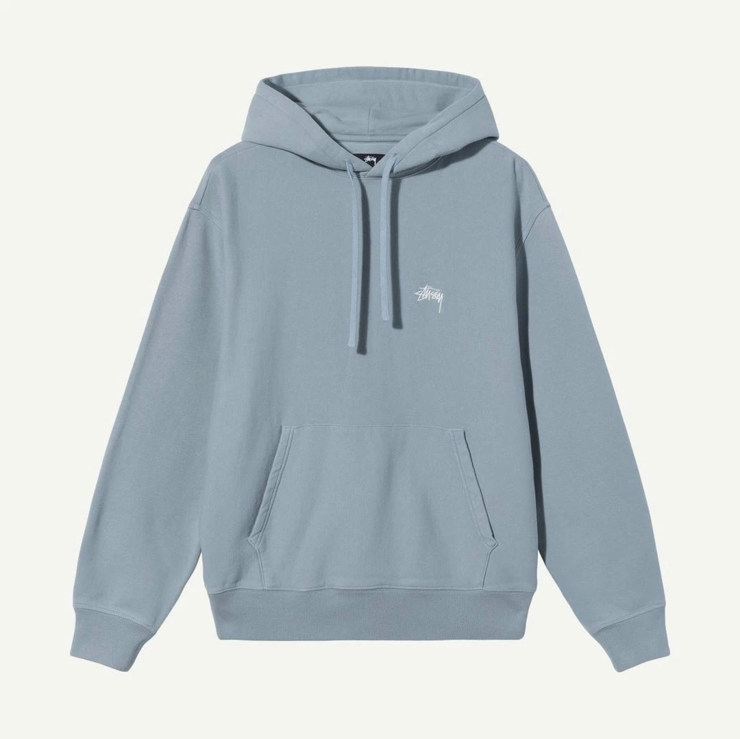 Crossgrain, overdyed hooded fleece sweatshirt with embroidered logo on left chest.