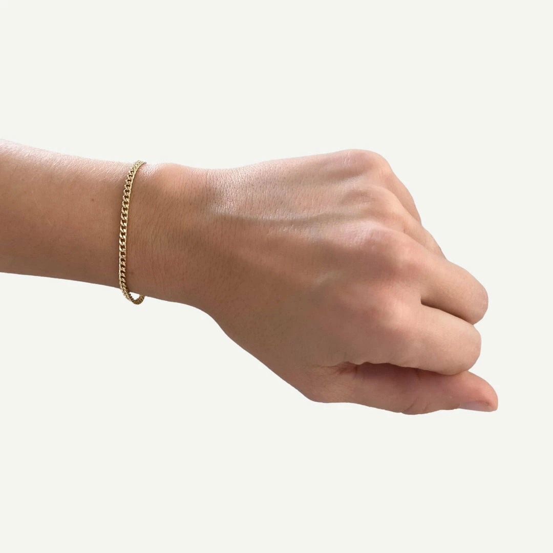 14k gold plated dainty curb chain bracelet. 6″-7.5″