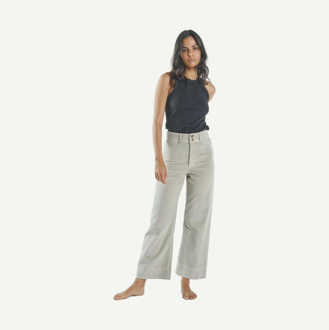 Thrills’ best-selling pant silhouette is now available in a comfortable corduroy stretch denim in our new favorite Gravel color-way. The Belle pant is an ultra high waisted wide leg jean with 70’s appeal. Featuring a slightly cropped length with a wider hem opening, the Belle Jean fits snug across your hips. The most flattering jean ever.