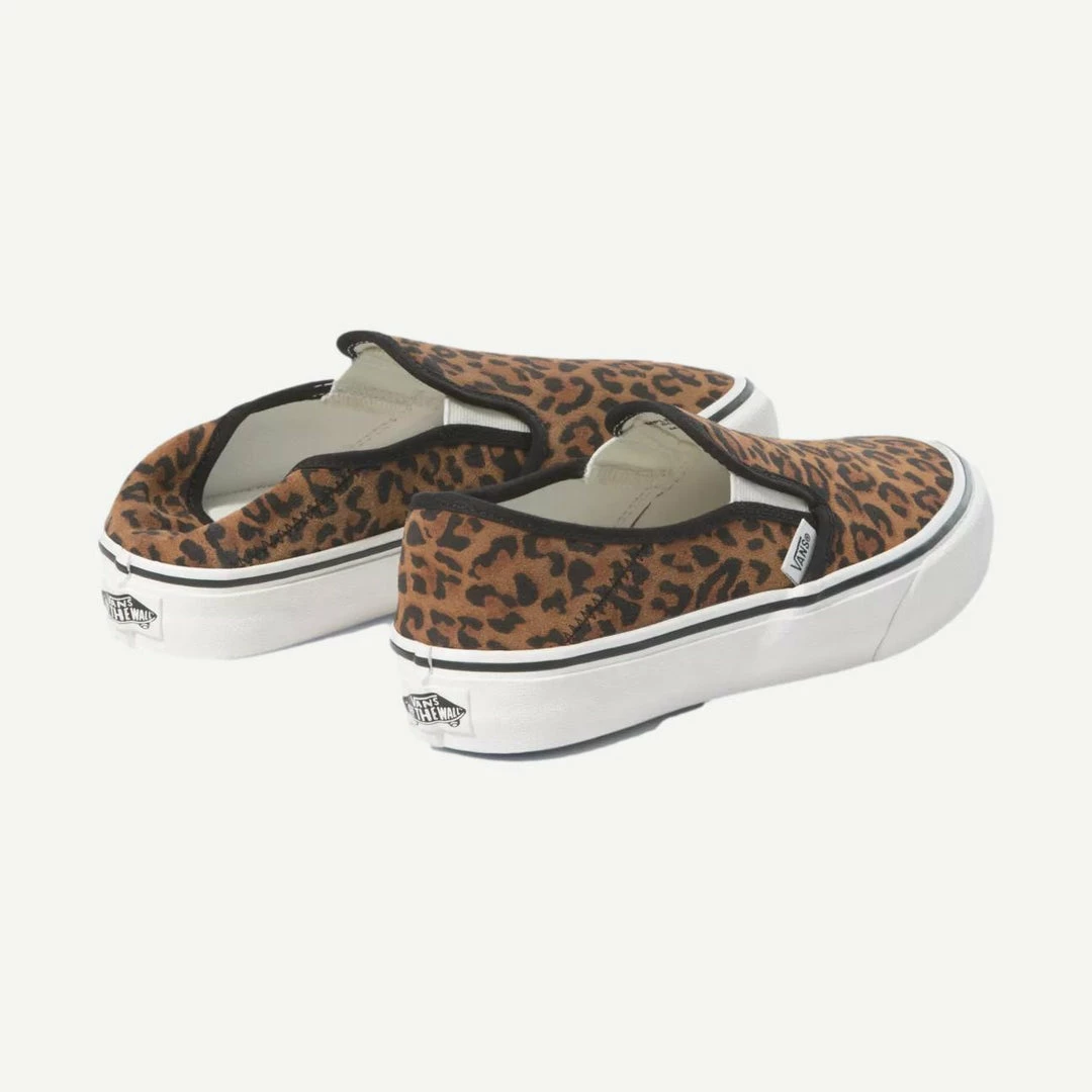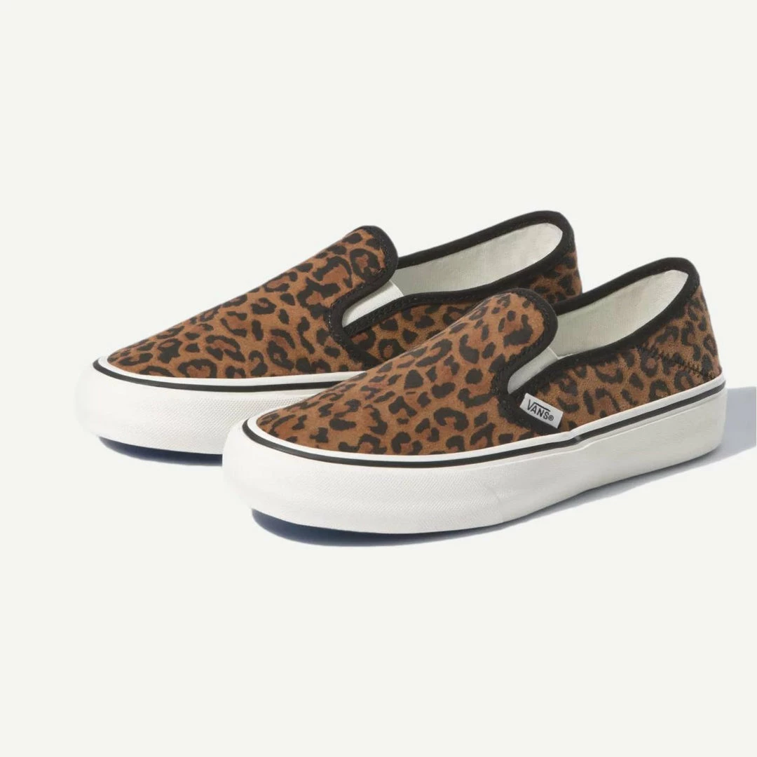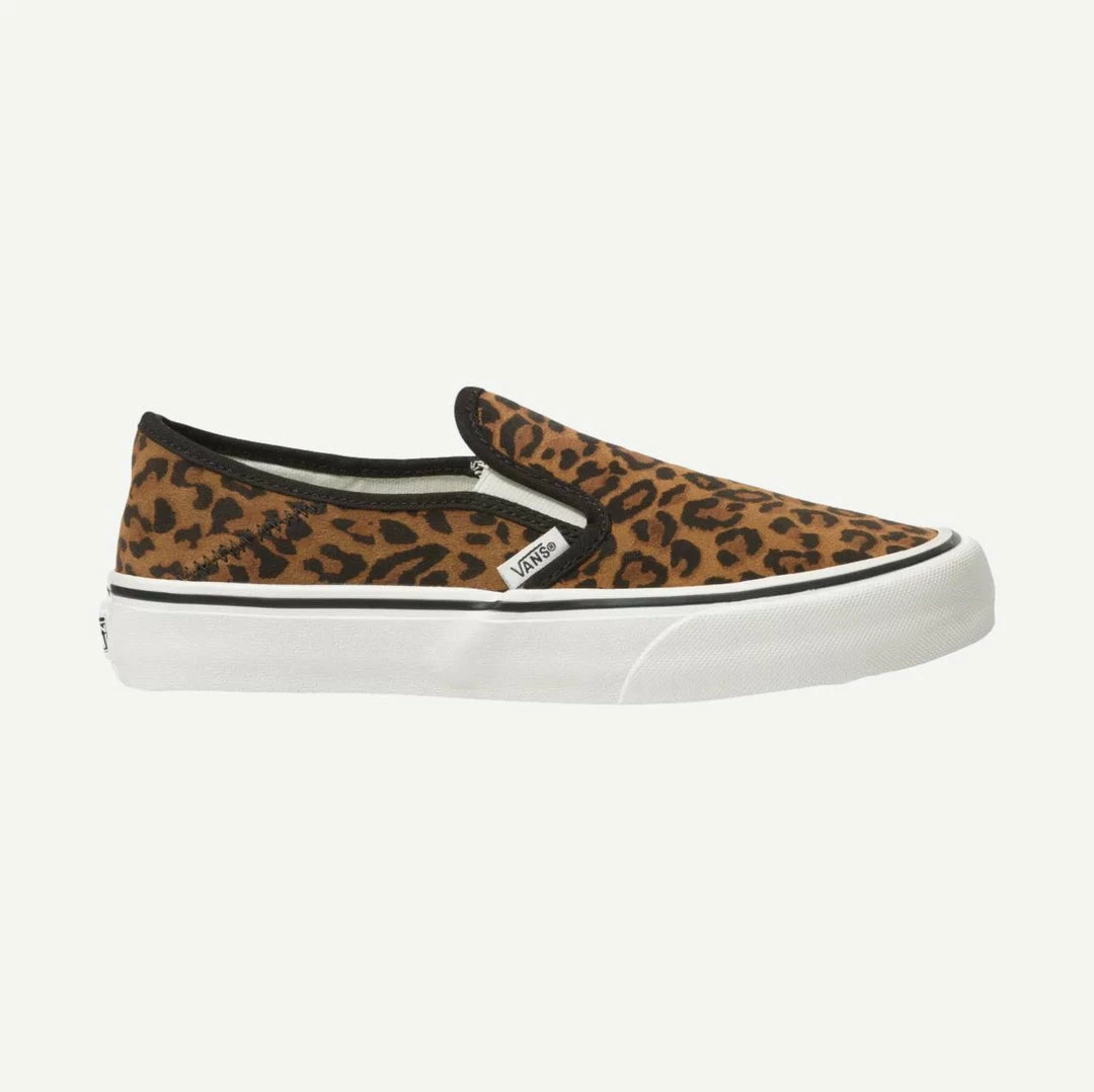 The Slip-On SF combines a deconstructed low profile silhouette with the Vans Surf SF build to create an upgraded, comfortable slip-on style. Featuring suede uppers with an allover leopard print, the Suede Leopard Slip-On SF also includes collapsible heels, ULTRACUSH™ Lite drop-in sockliners for elevated cushioning, lightweight and flexible single-wrap foxing tape, and durable rubber outsoles with the Vans classic waffle pattern. It is made with water-based inks and glues.