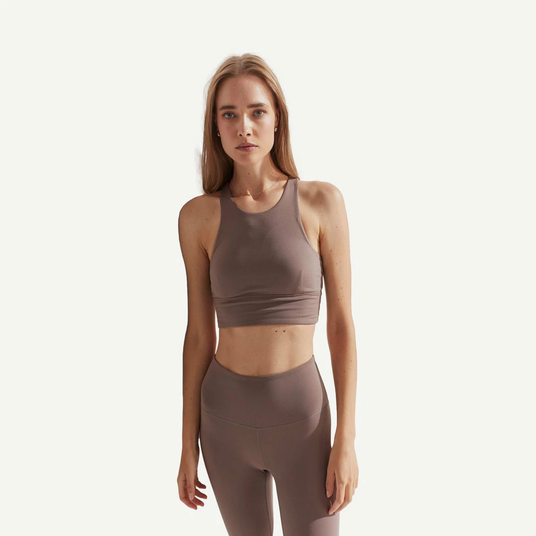An elegant, longline, medium support bra with a high crew neck and racer back detail. Crafted in a recycled Let’s Move fabric, the Harris is beautifully breathable and efficiently wicks away moisture. A smoothing hem band reduces movement, while removable cups offer a personalised fit.
