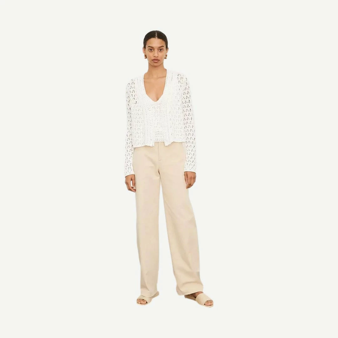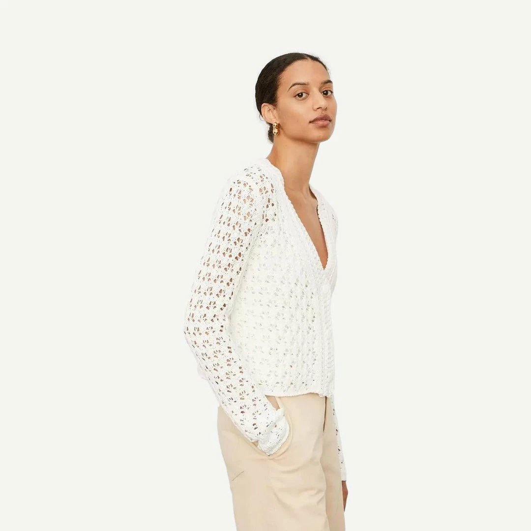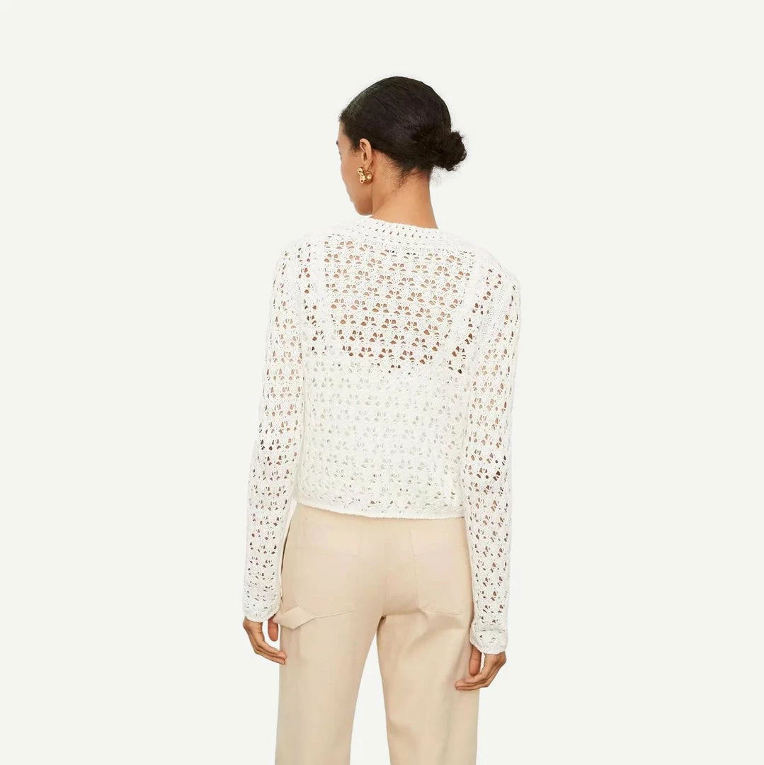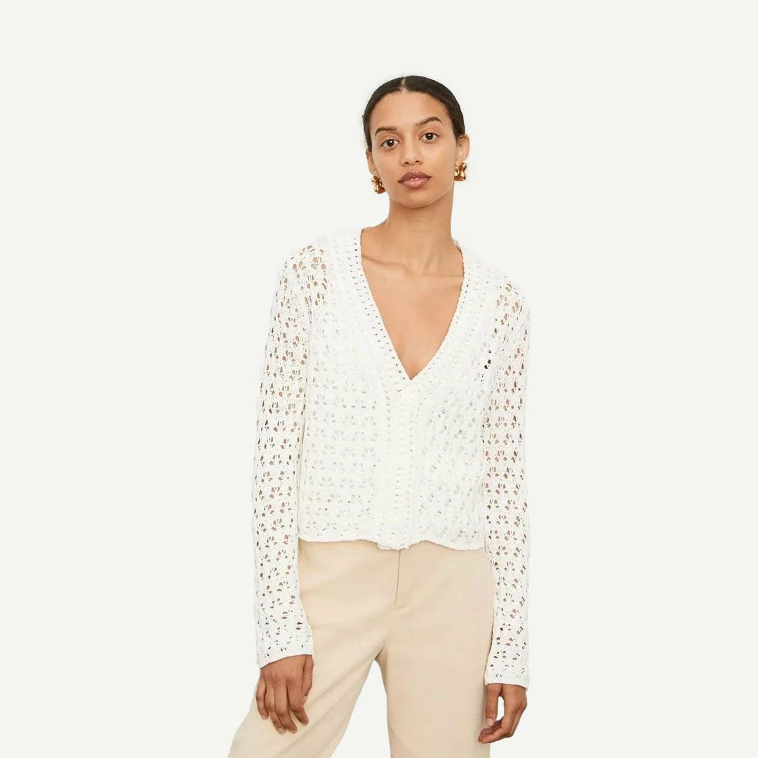 Knit in a lace-like pointelle, our cotton cardigan features tonal buttons and open stitch trim on an ever so cropped raglan-sleeve body. A lovely essential to slip on over our Crochet Bralette, Camisole, and every dress in your wardrobe.