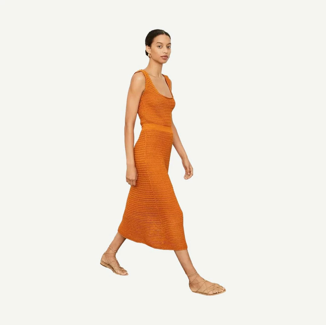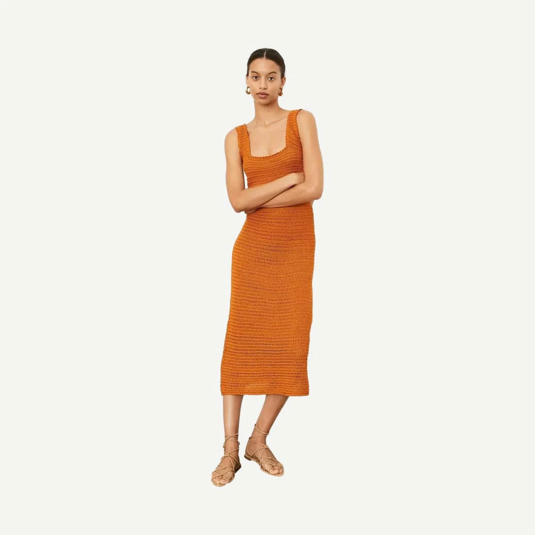Woven from cotton cord, our crochet skirt is effortless and feminine. Its half-lined silhouette features a peek of skin at the knee with a slight flare at the hem.