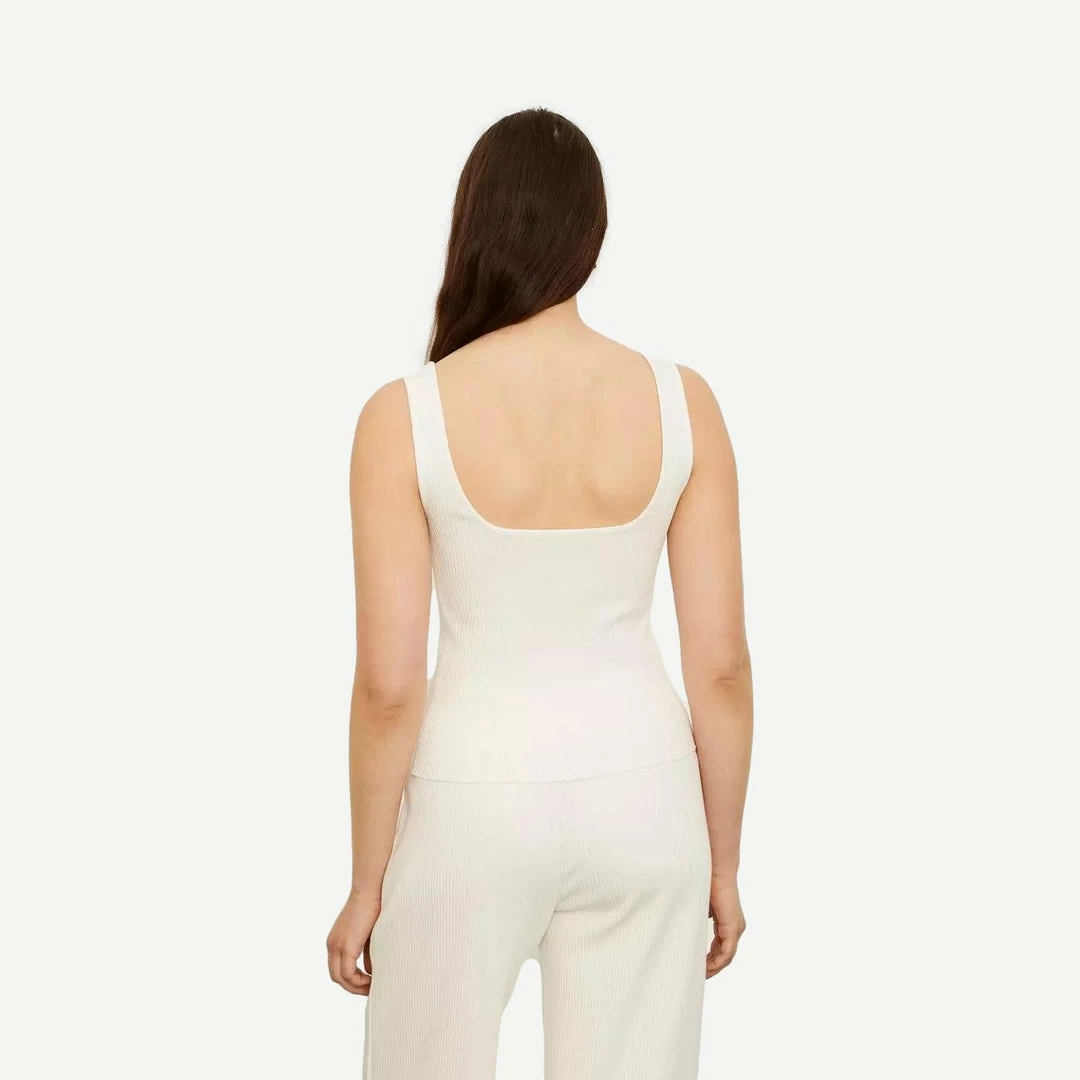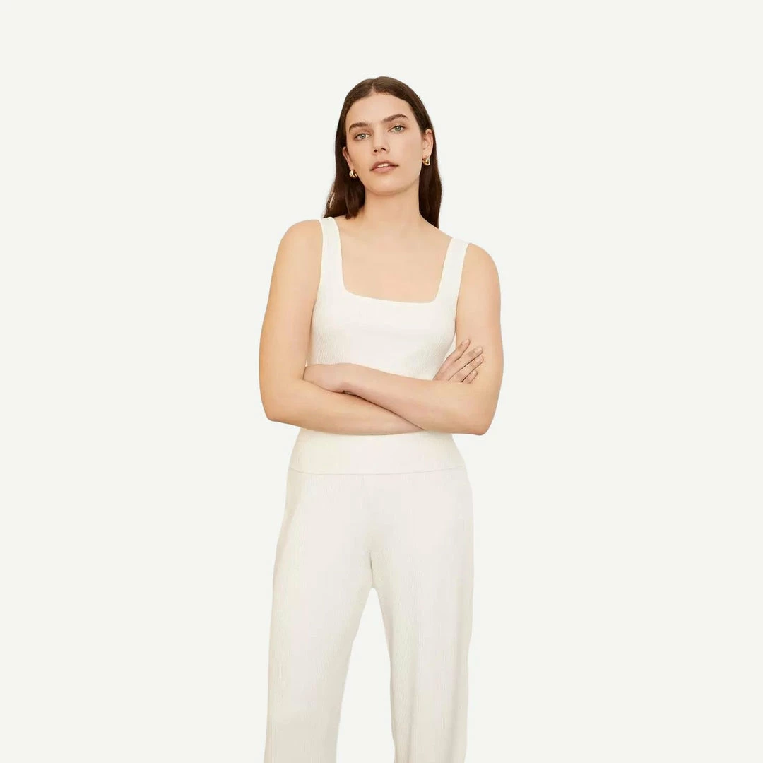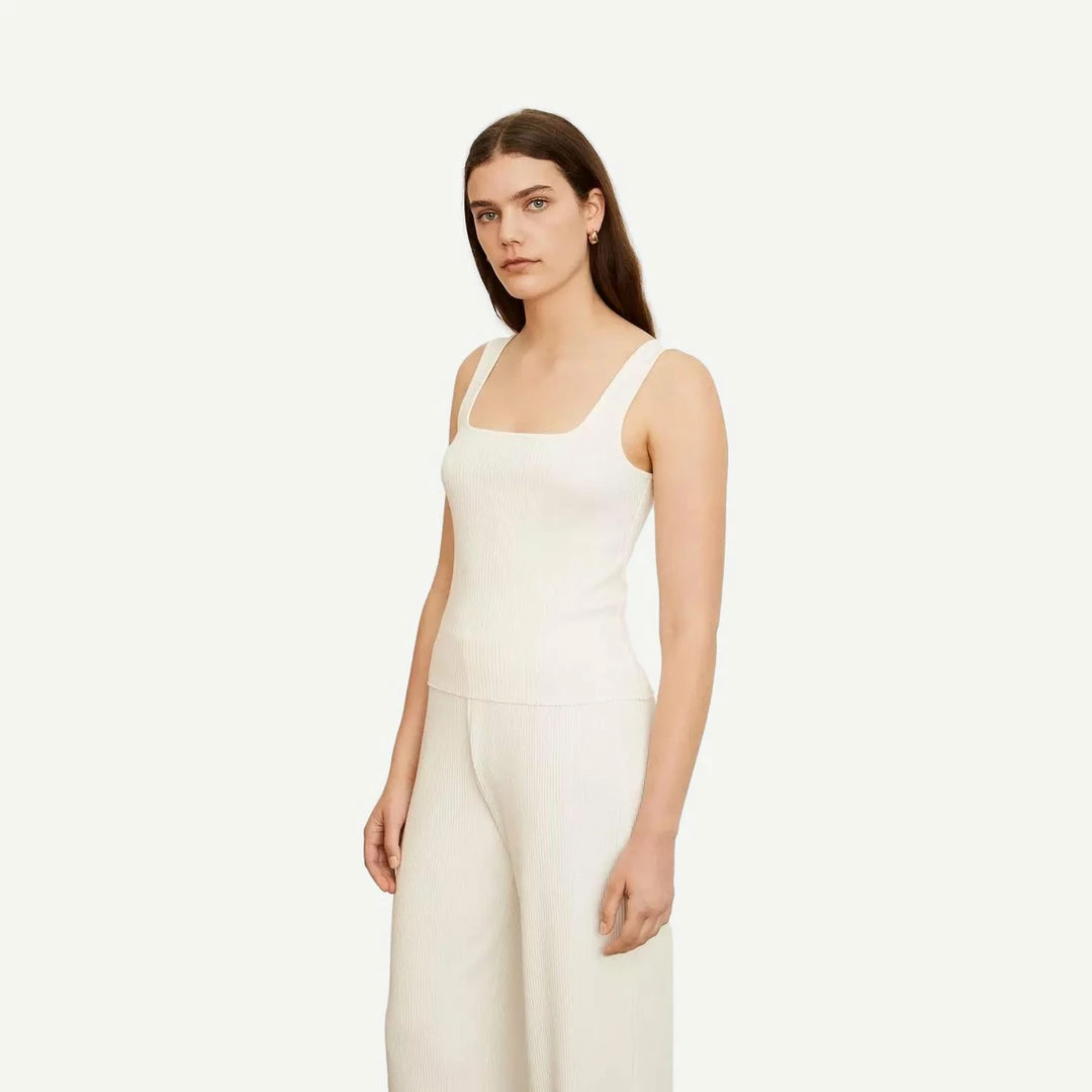 This clean and modern essential camisole is done in a thick cotton-modal rib. It features wide straps, a square neckline, low back and cropped silhouette.
