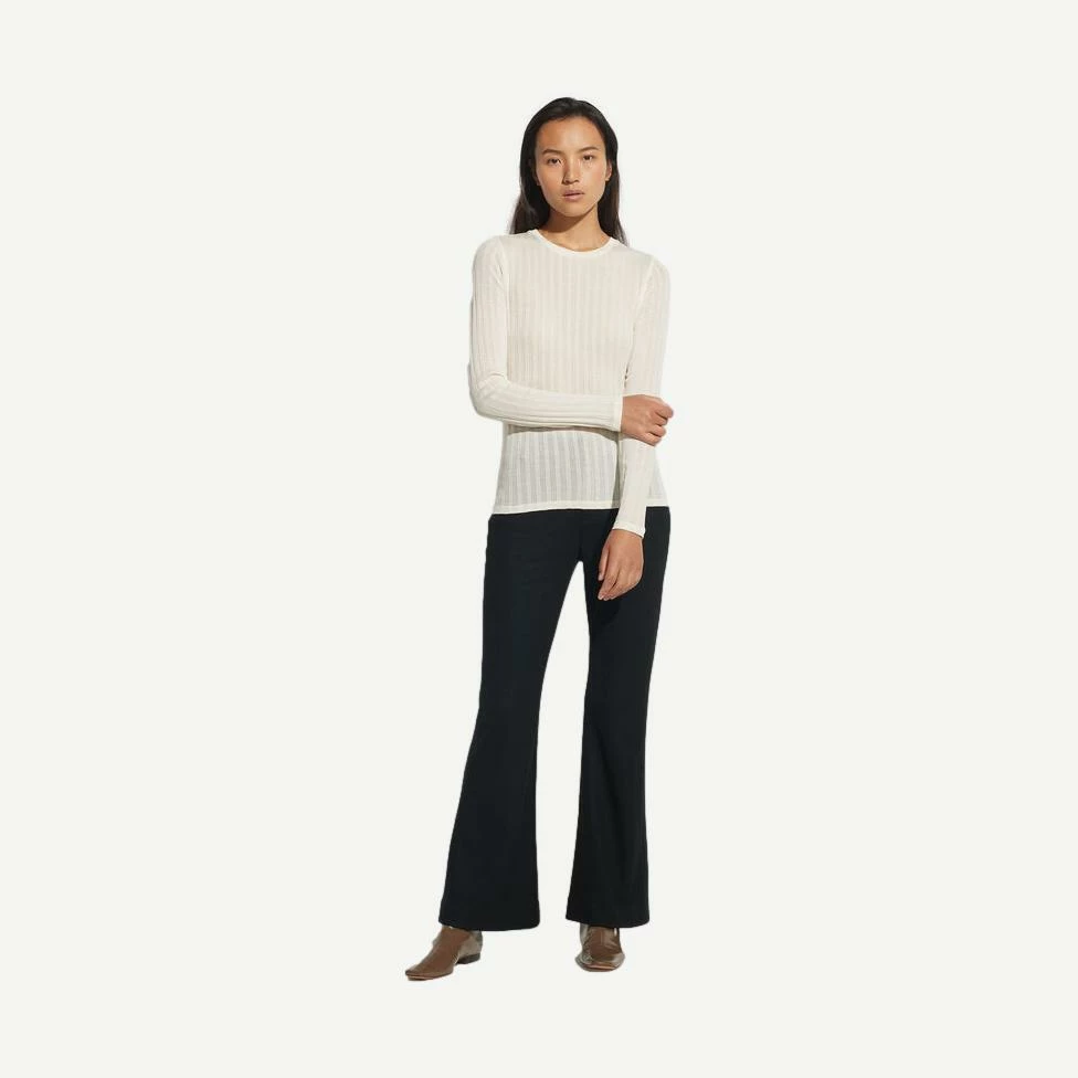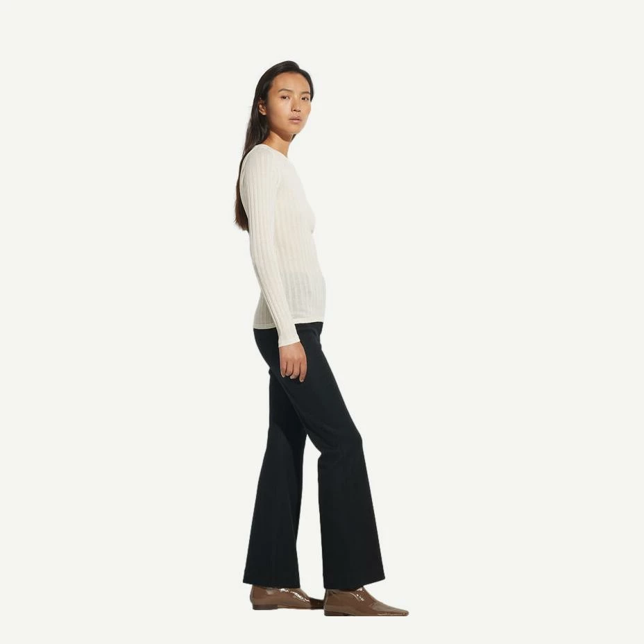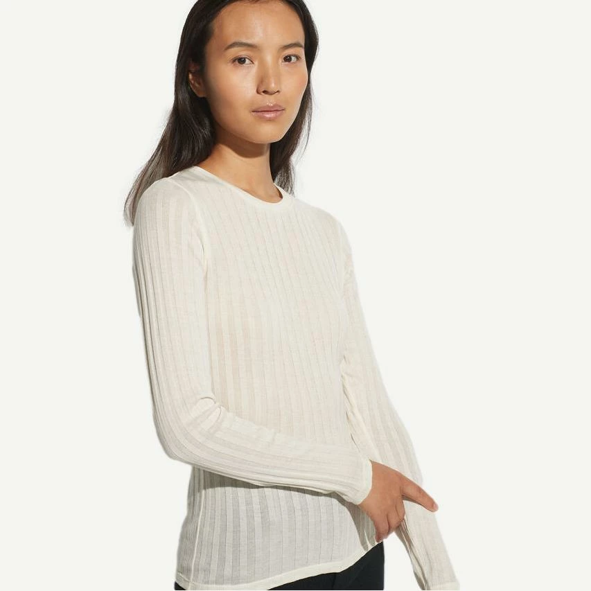 Elegant ribs follow the form in our close-to-the-skin long sleeve cotton crew.