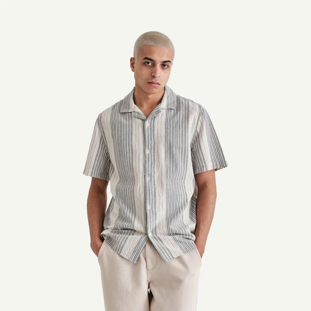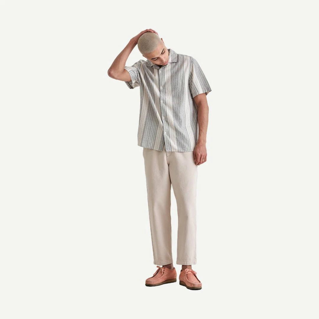 Made from lightweight cotton with a textured crepe handfeel, this new iteration of the ‘Didcot’ is the perfect answer for seeing long summer days into the night. Made to look and feel breezy like linen, without compromising the detailed pattern finish. Inspired by old school bowling shirts.